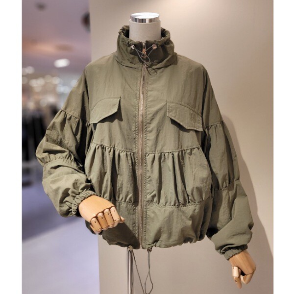 HNFAJP02_밑단 스트링 루즈핏 셔링 점퍼