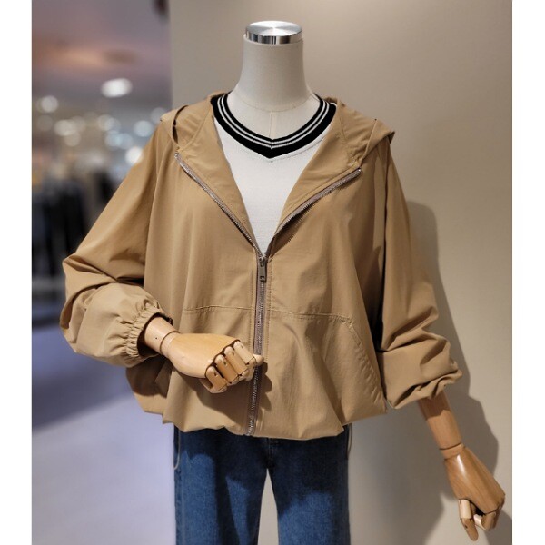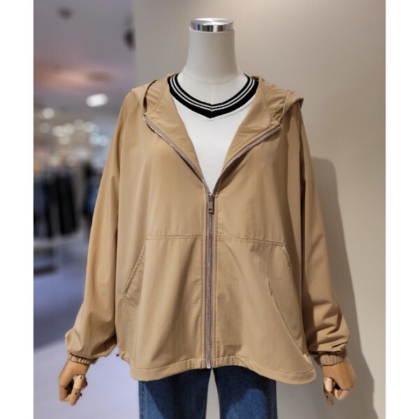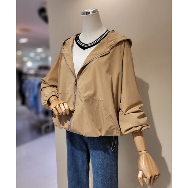 HNFAJP01_밑단 스트링 스판 후드 집업점퍼