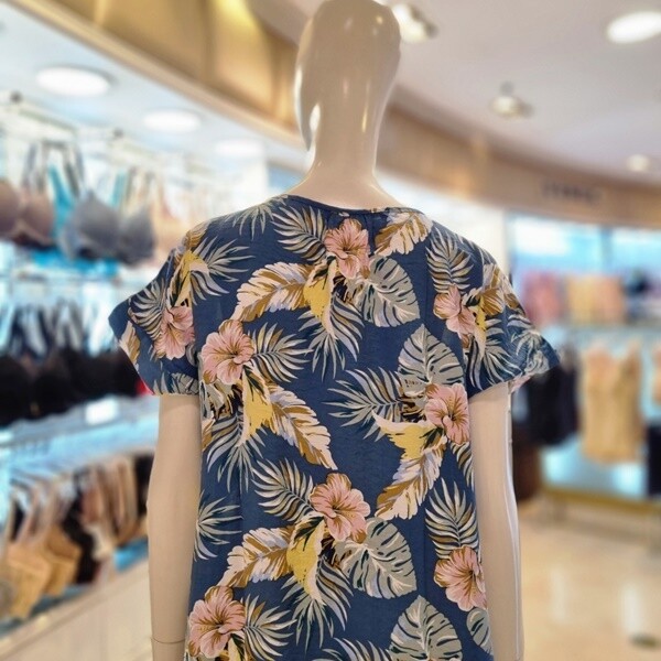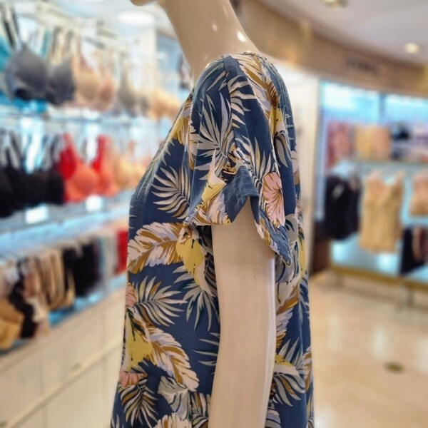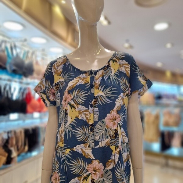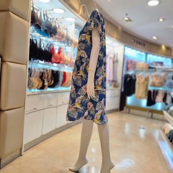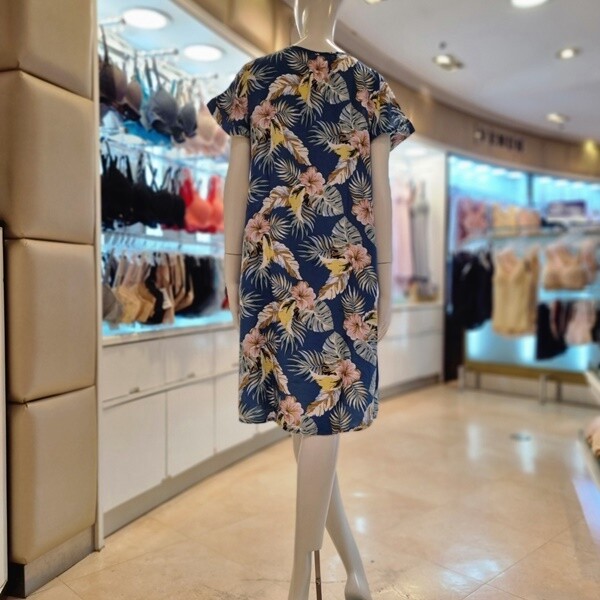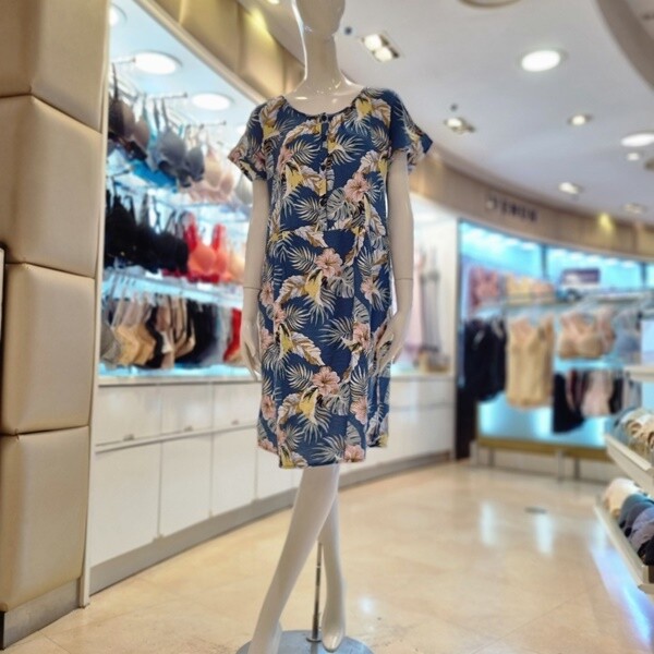 GW1854B_NR나뭇잎 프린트 여성 원피스 홈웨어