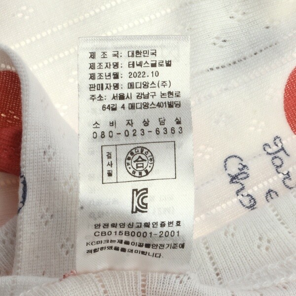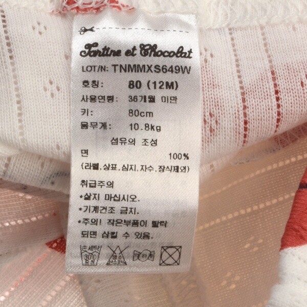 | 9. A/S 책임자와 전화번호 | 단독세탁, 기계건조금지, 삶지 마십시오, 주의! 작은 부품이 탈락되면 삼킬 수 있음 구매일로부터 6개월 |