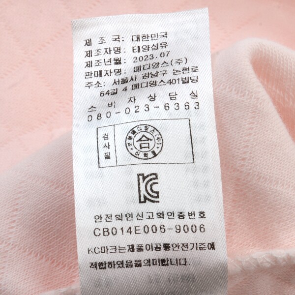 | 1. 제품 소재 (섬유의 조성 또는 혼용률을 백분율로 표시, 기능성인 경우 성적서 또는 허가서) | 겉감 레이온 70 면 30 이면 면 100 배색 1 면 100 배색 2 면 94 폴리우레탄 6 충전재 폴리에스터 100 |