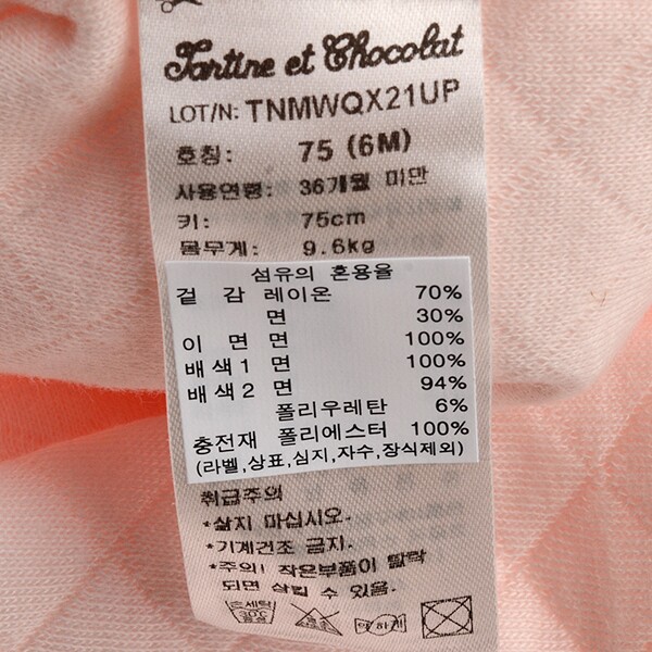 | 6. 세탁방법 및 취급시 주의사항 | 삶지 마십시오. 기계건조 금지. 주의! 작은 부품이 탈락되면 삼킬 수 있음. |