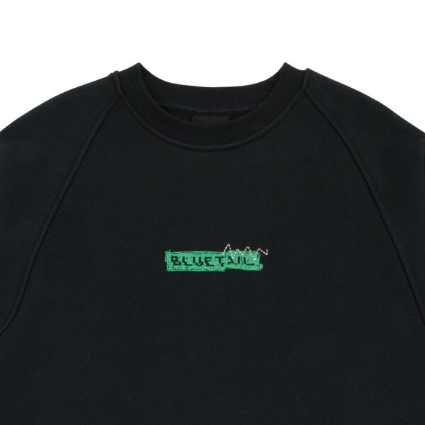 다크네이비 컬러로 제안한 래글런 맨투맨 티셔츠입니다. 앞판 가슴에 작지만 강렬한 그린 컬러 포인트가 포인트로 들어간 상품입니다. 등판에는 공간감 있는 레터링 포인트를 나염으로 제안하였습니다. 변형된 밑단 립 디테일이 입었을 때 자연스럽게 떨어지는 핏이 멋진 상품입니다.??