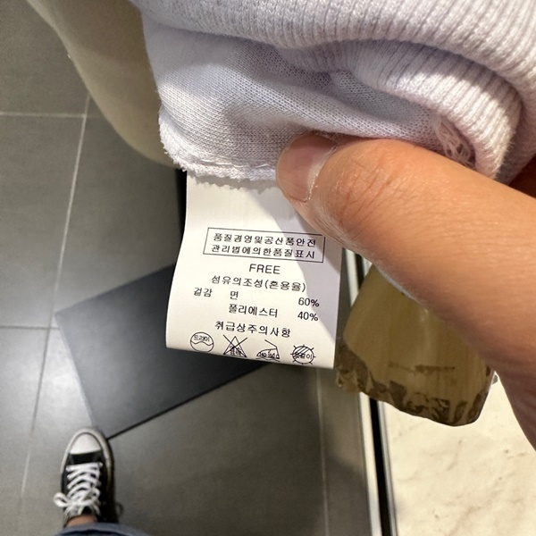 | 1. 제품 소재 (섬유의 조성 또는 혼용률을 백분율로 표시, 기능성인 경우 성적서 또는 허가서) | 면 60%, 폴리에스터 40% |