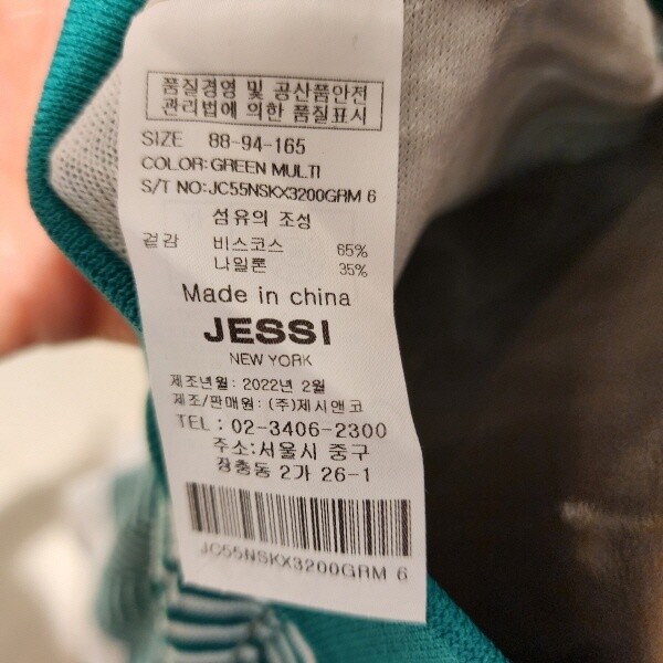 | 1. 제품 소재 (섬유의 조성 또는 혼용률을 백분율로 표시, 기능성인 경우 성적서 또는 허가서) | 비스코스65%나일론35% |