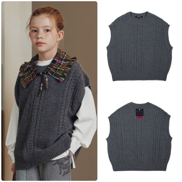 AWG4VK01GY_부클 원사 꽈배기 니트 베스트
