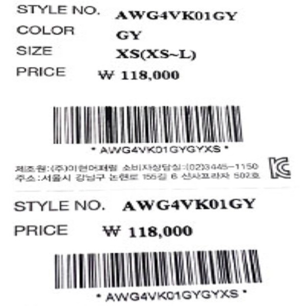 | 1. 제품 소재 (섬유의 조성 또는 혼용률을 백분율로 표시, 기능성인 경우 성적서 또는 허가서) | AWG4VK01GY |