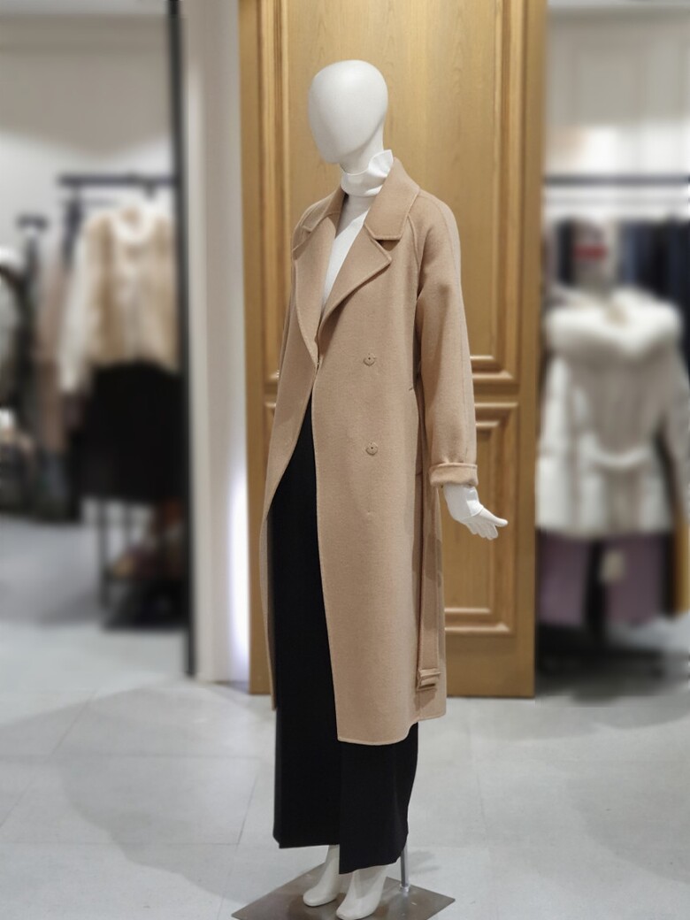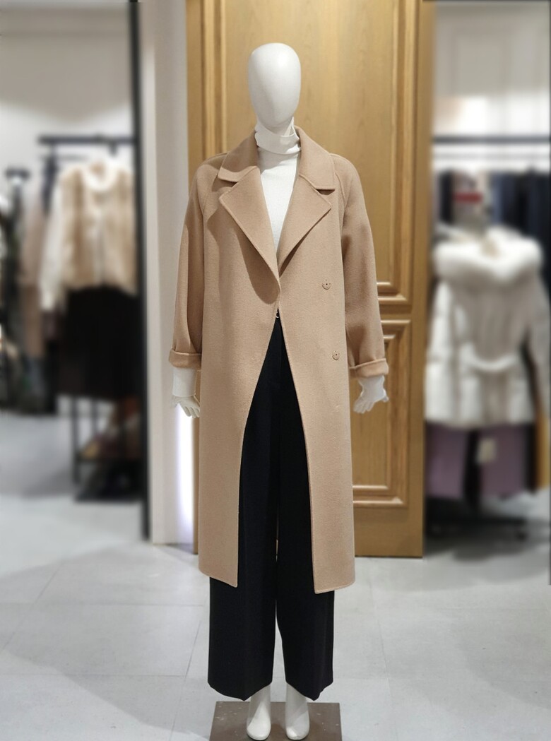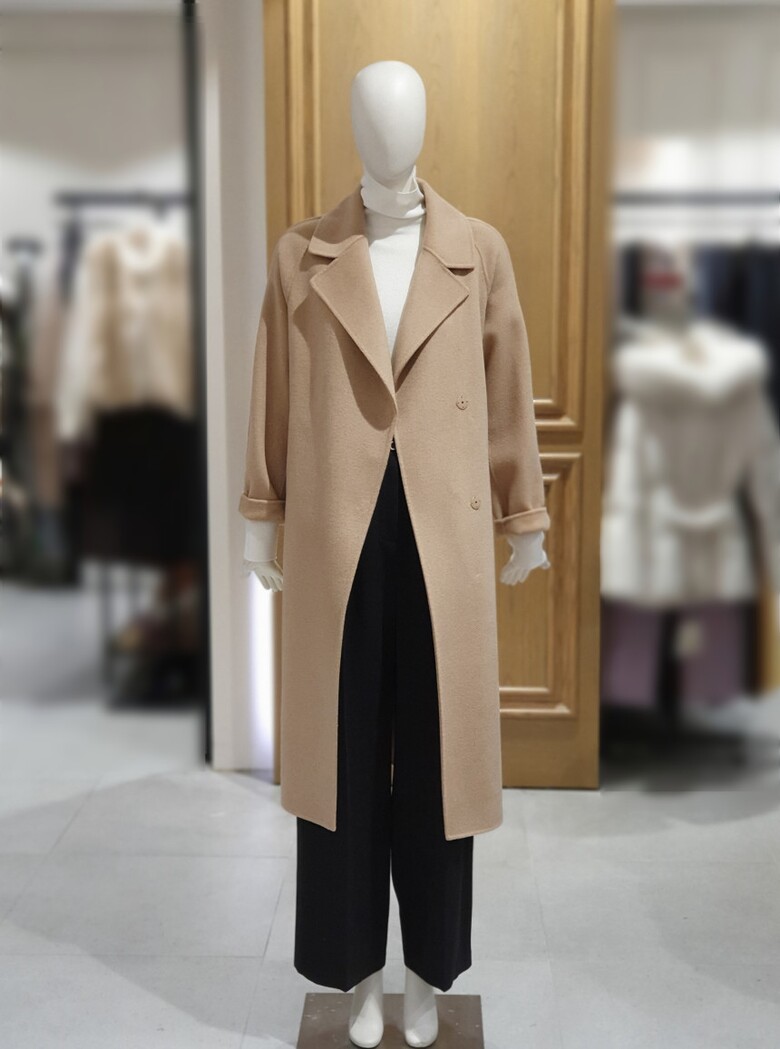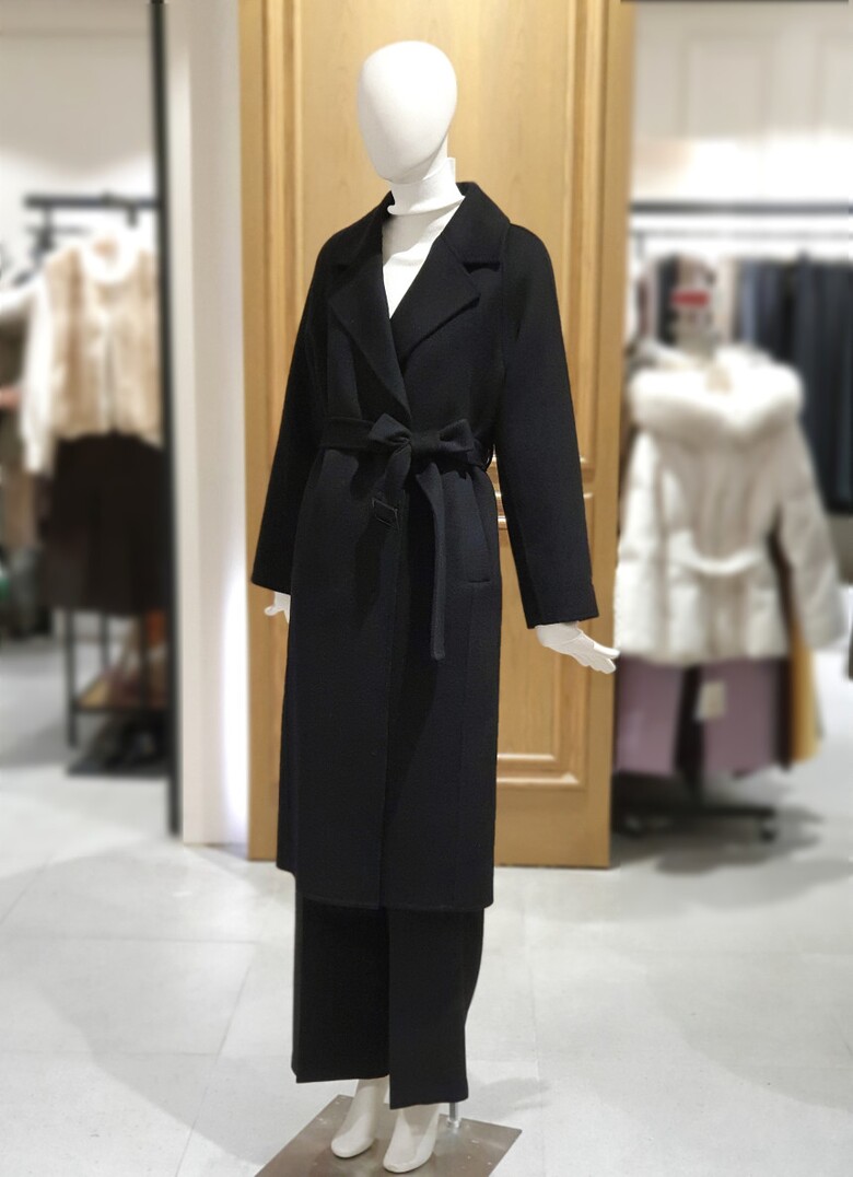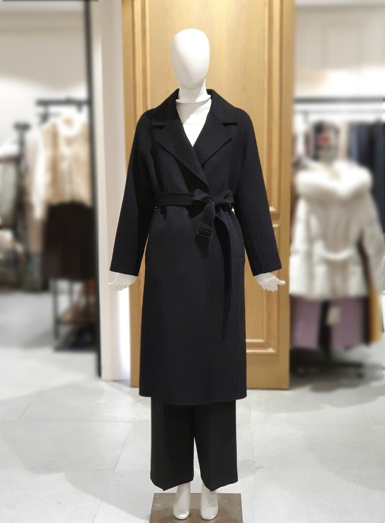 테일러드 카라 넥에 맥시 한 기장감으로 스타일리시하며