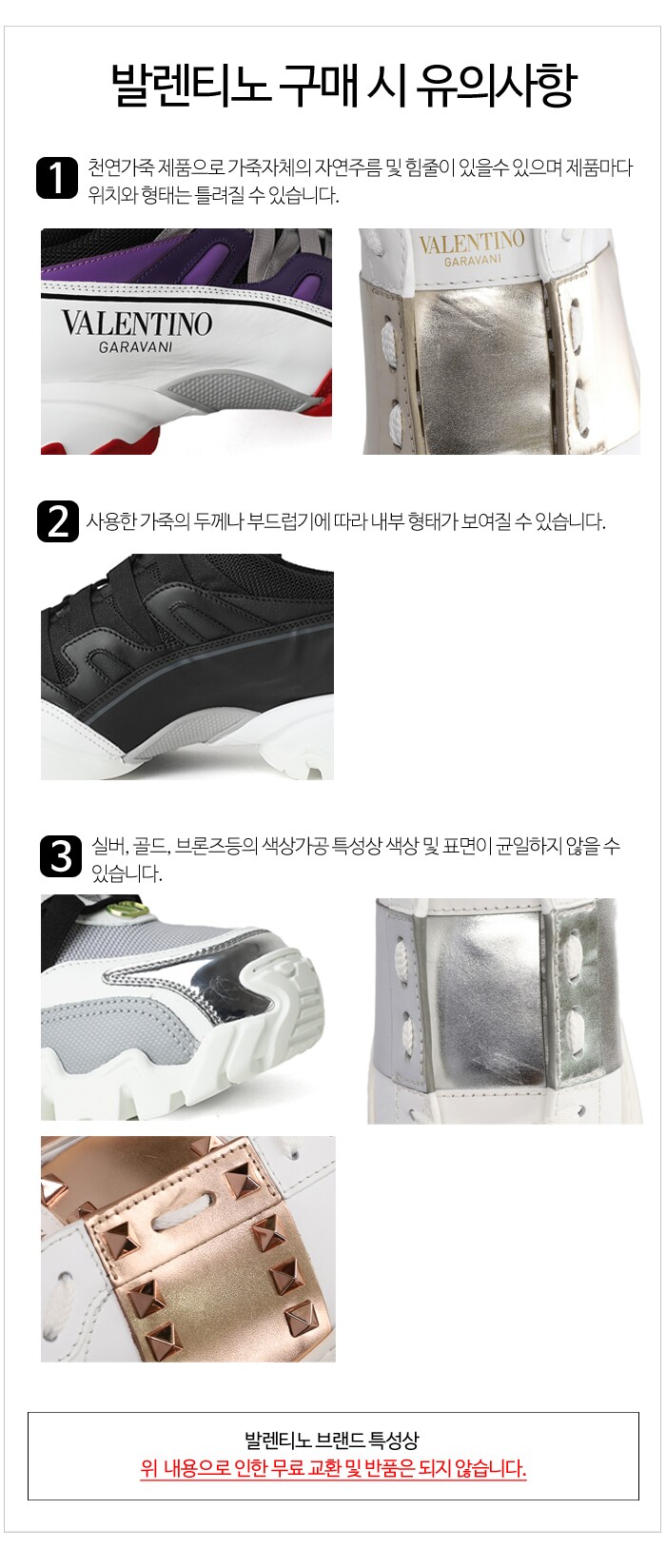 | 세탁 및 취급방법 | 세탁 불가(부드럽고 마른천으로 먼지만 관리), 우천시 착용금지 신발 내부 유색염색된 모든 제품은 3~4개월 또는 그 이상 기간에도 발과의 마찰과 땀에 의해 양말에 이염이 되오니 짙은색상의 양말을 착용하세요.(묻어남은 제품 및 개인별 정도 차이 있음) |