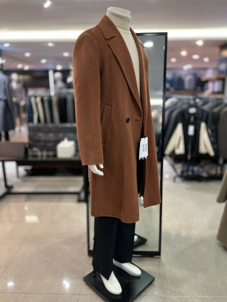 다크오렌지 구스다운 세미오버핏 핸드메이드 로브 코트
