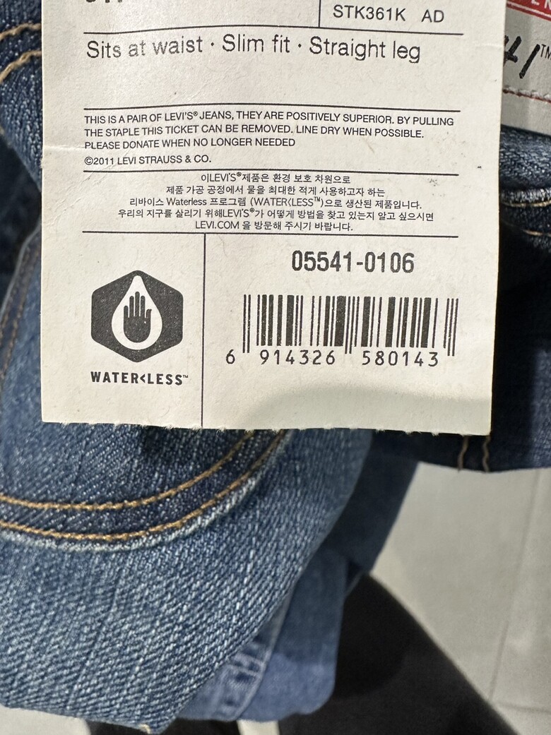 남성 541 슬림 스트레이트 청바지입니다.