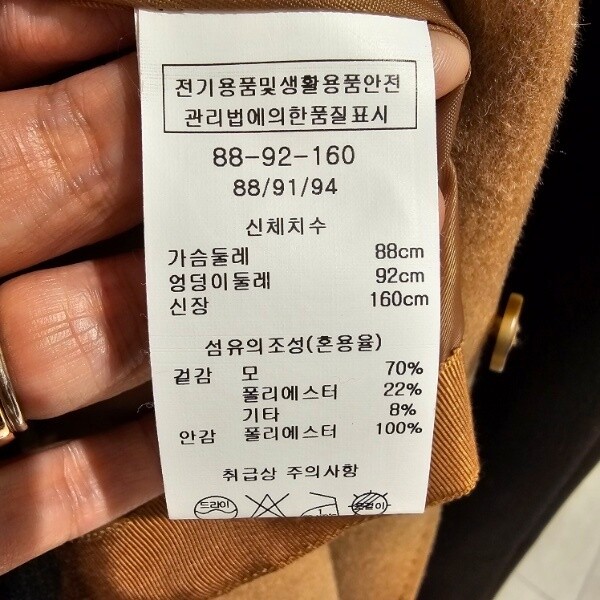 제품소재 : 겉감 모 70% 폴리에스터 22% 기타 8% / 안감 폴리에스터 100%