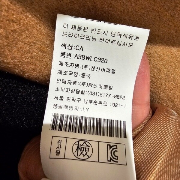 제조자 : (주)참신어패럴