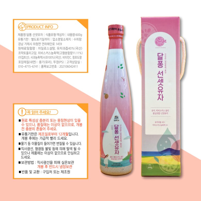 해당 상품은 여러가지 구성이 있으니 구매를 원하시는 구성의 상품명과 상세페이지의 내용이 일치하는지 확인 후 구매 부탁드립니다. 해당 상품은 [ 달퐁 선셋유자 단품 600g ] 구성의 상품입니다.