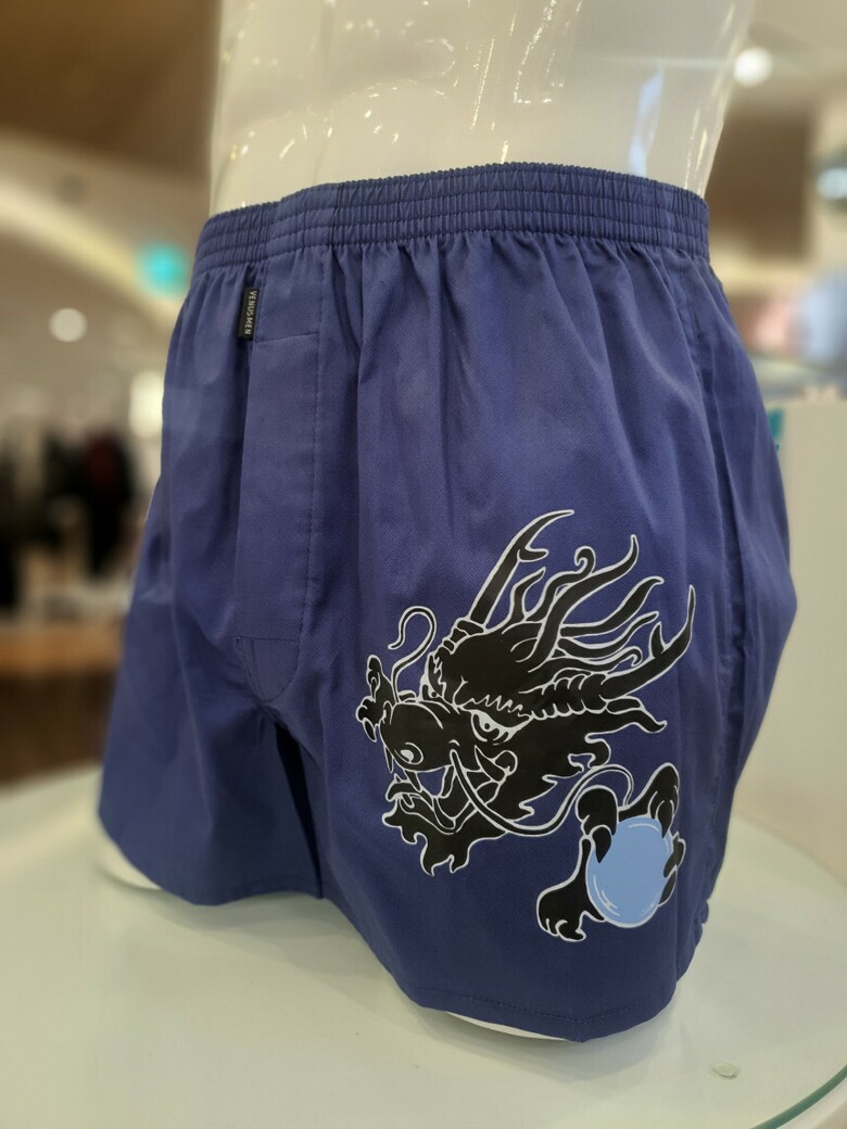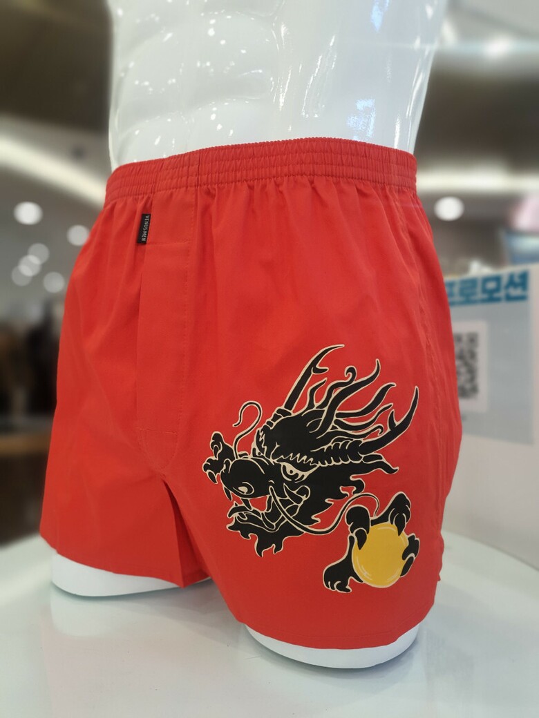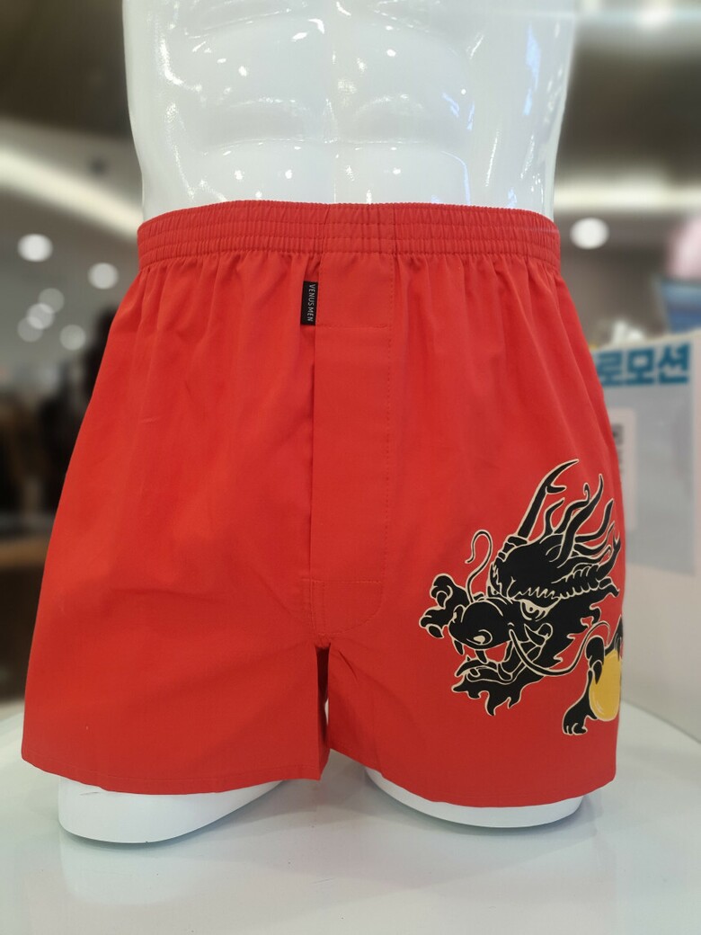 원포인트 용 나염이 돋보이는 디자인의 트렁크팬티 입니다.