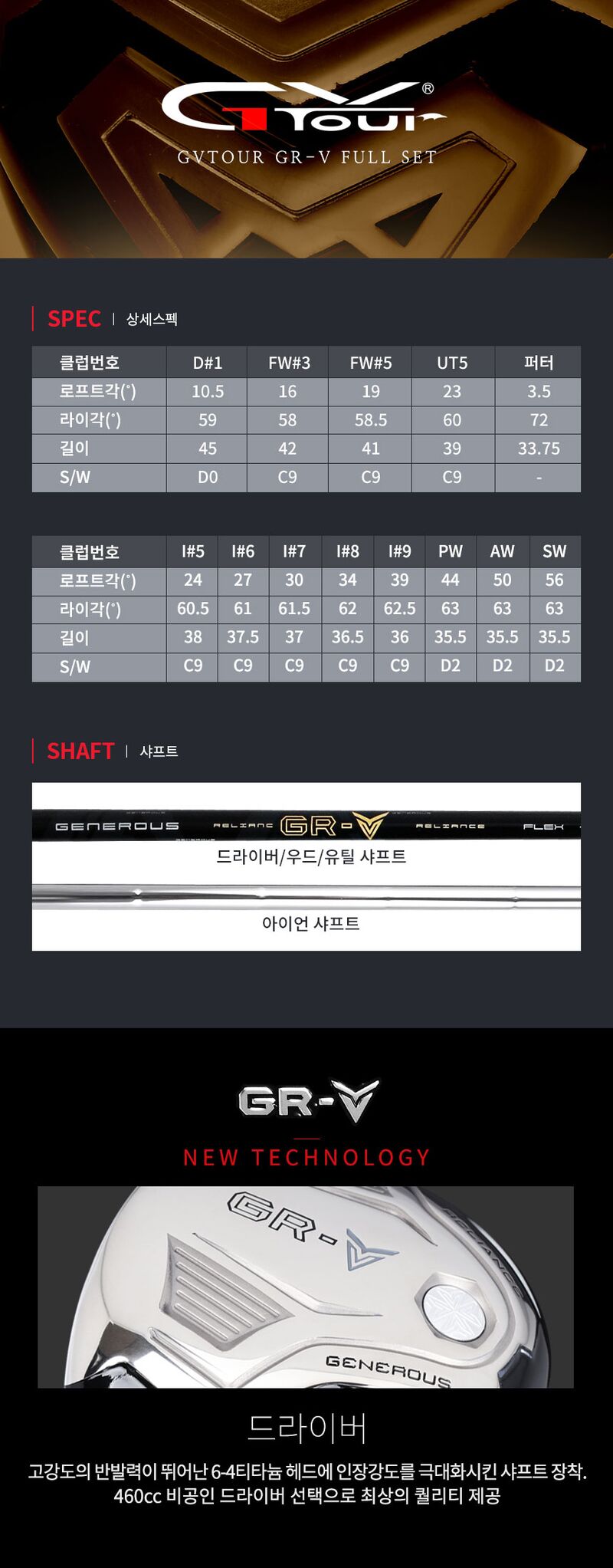| 1. 품명 및 모델명 | 지브이투어 GR-V 왼손용 풀세트 |