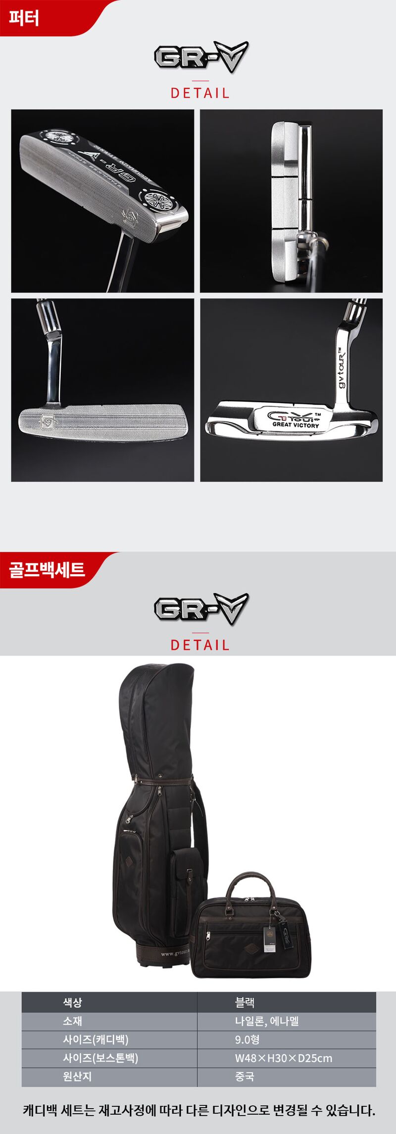 | 5. 제품 구성 | 드라이버1개,우드2개,유틸리티1개,아이언8개,퍼터,캐디백,보스턴백 |