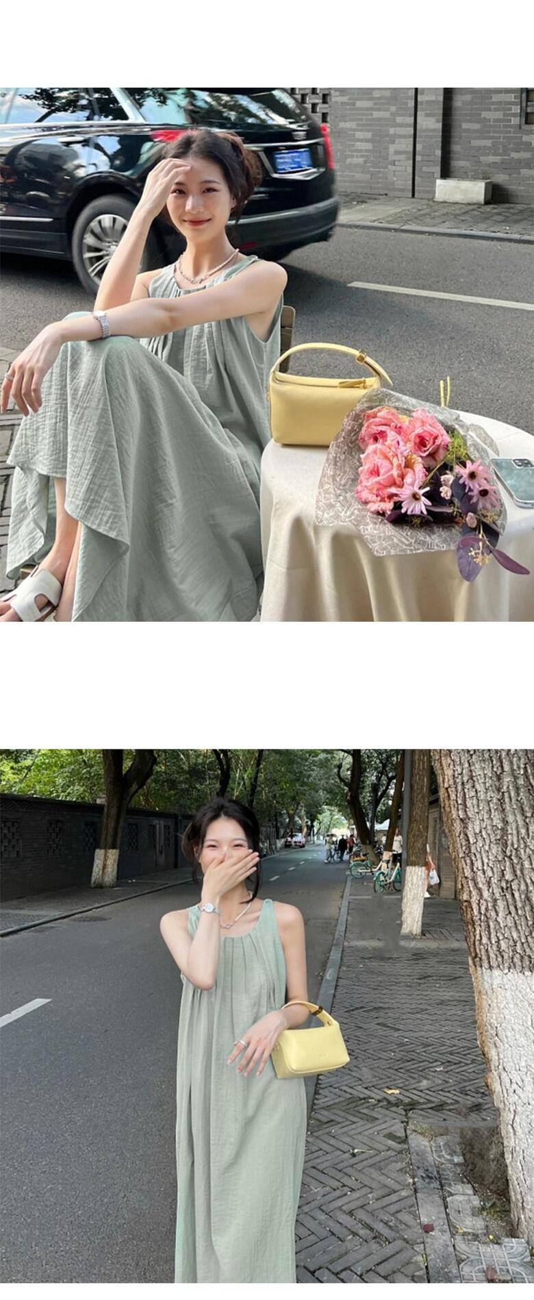 에퀴르 여성 여름 라운드넥 백트임 예쁜 데일리 나시 롱원피스