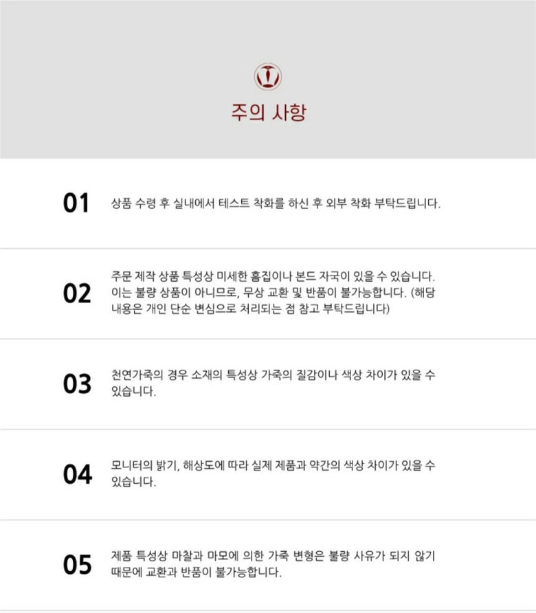 반품 유의사항