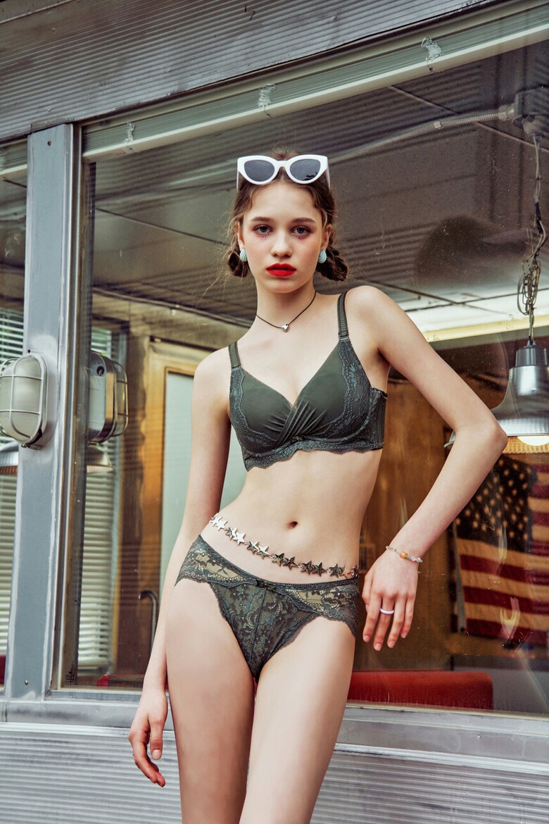 컵 사이드에서 어깨끈까지 자연스럽게 이어진 레이스가