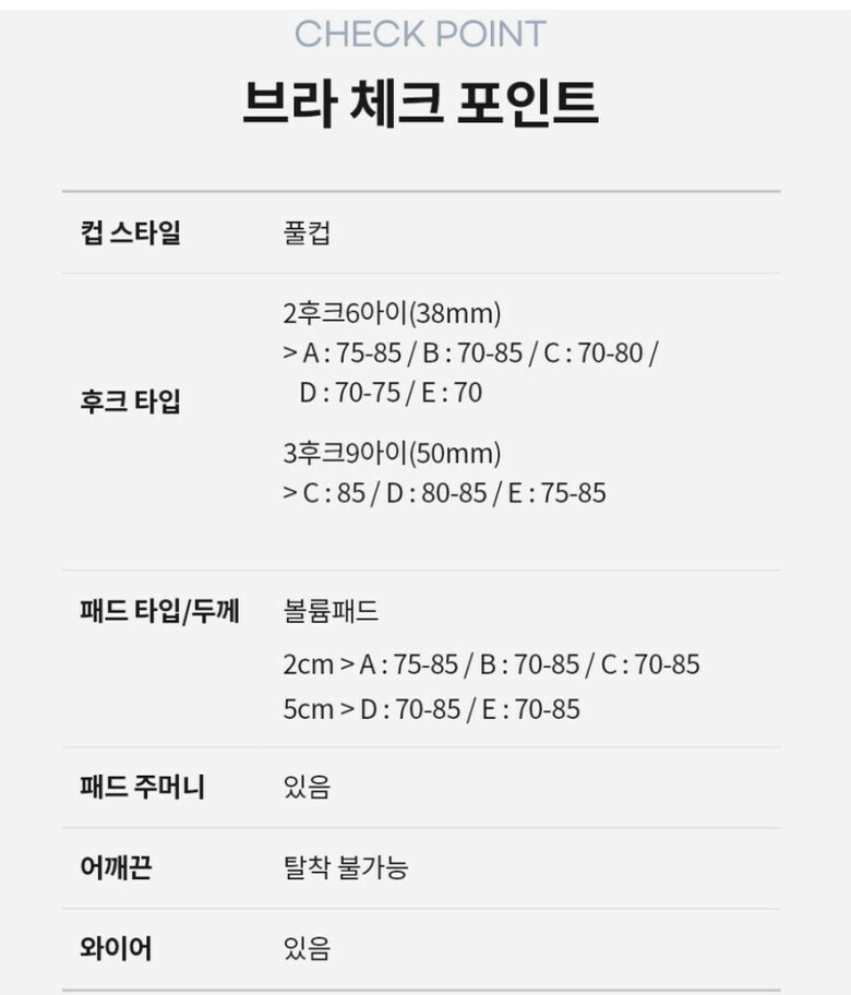 사이즈 : 75A,80A,85A,70B,75B,80B,85B,