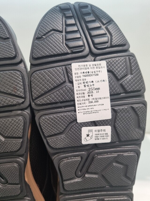 | 1. 제품 소재 (운동화인 경우에는 겉감, 안감을 구분하여 표시) | 소가죽 |