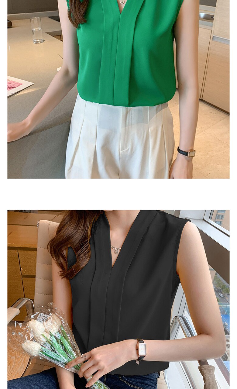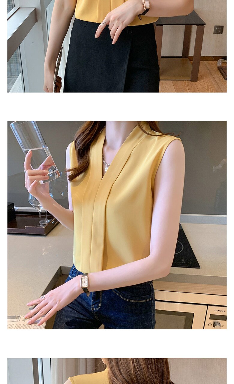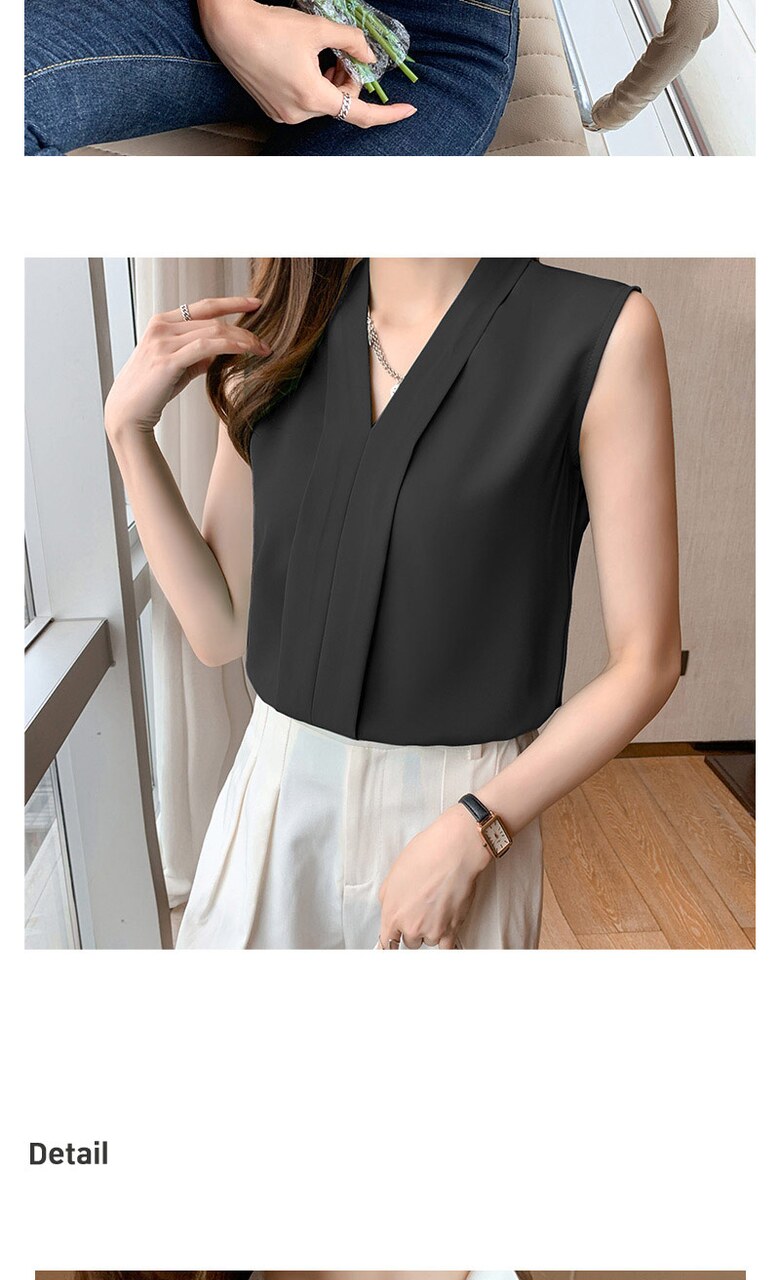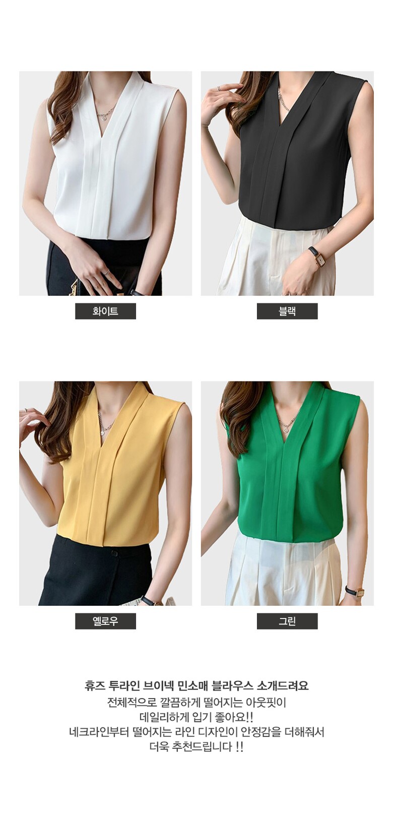 [~88까지]휴즈 투라인 브이넥 민소매 블라우스
