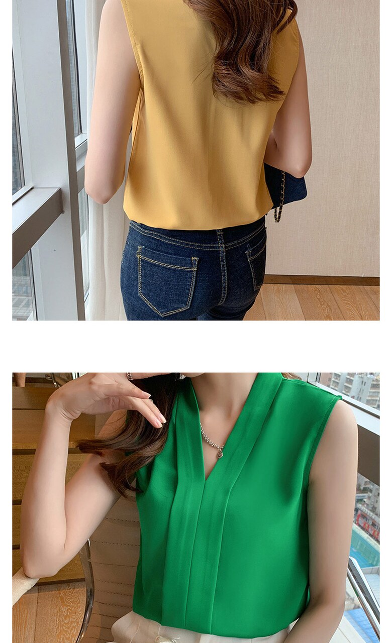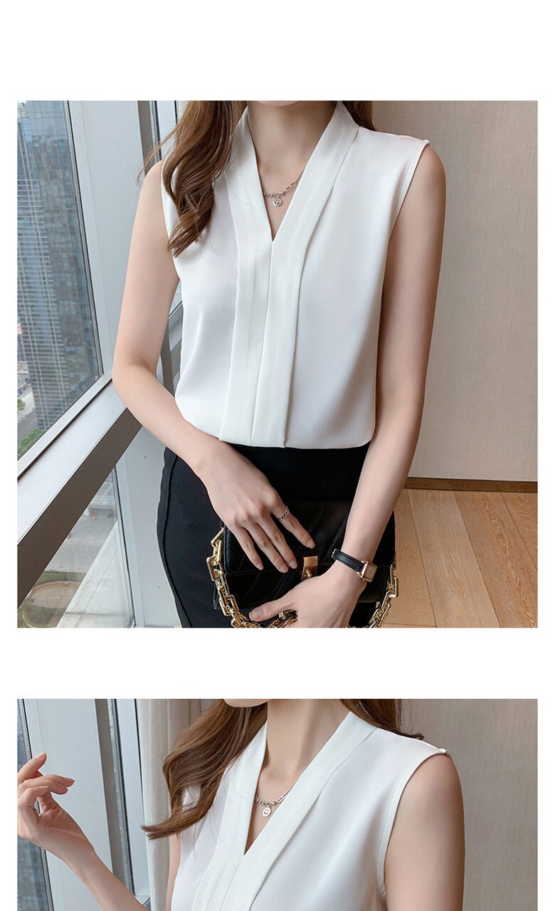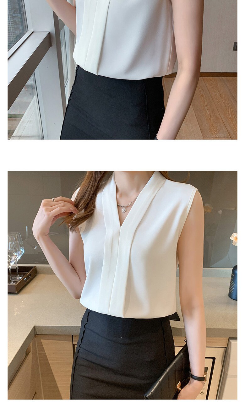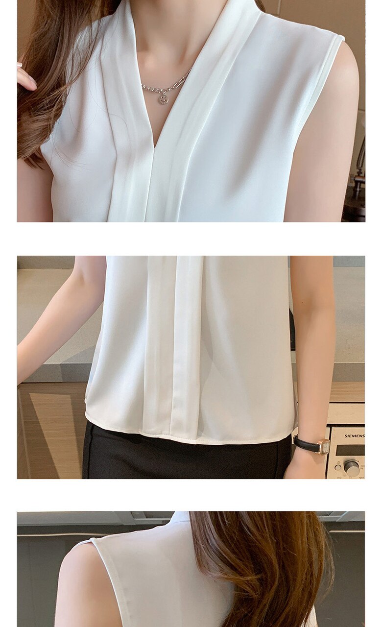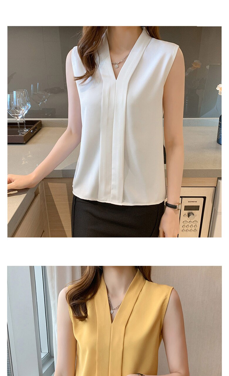 [~88까지]휴즈 투라인 브이넥 민소매 블라우스