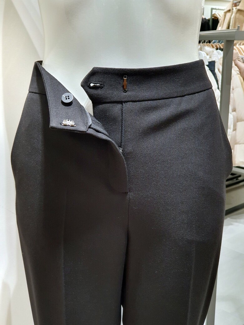 포멀한 무드가 느껴지는 스트레이트 핏 슬랙스입니다.