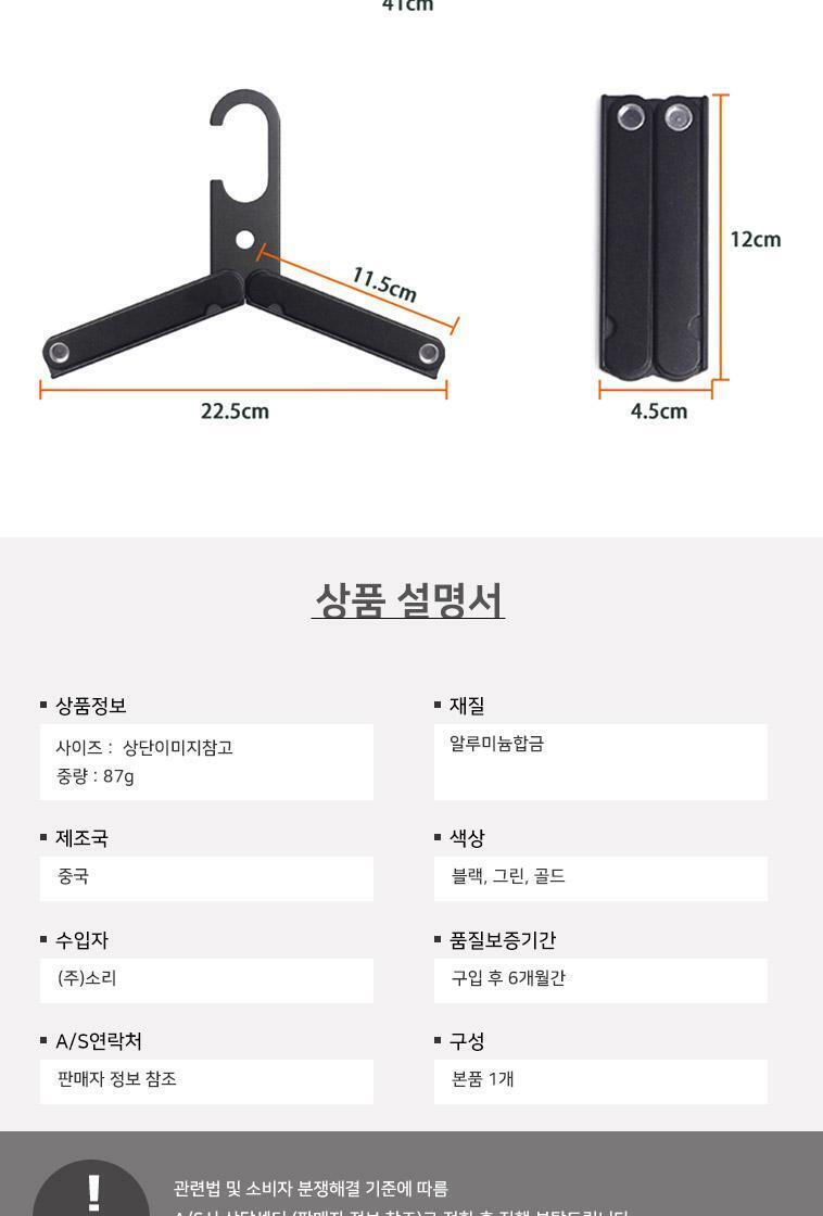 해당 상품은 [ 캠핑 접이식 알루미늄 옷걸이 3개 세트 ] 구성의 상품입니다.