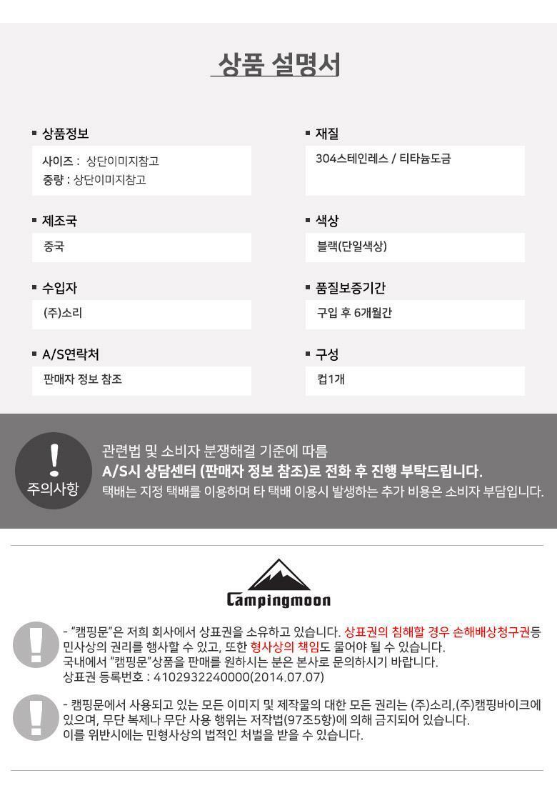 캠핑문 블랙 티타늄도금 304스텐레스 컵 BKS220