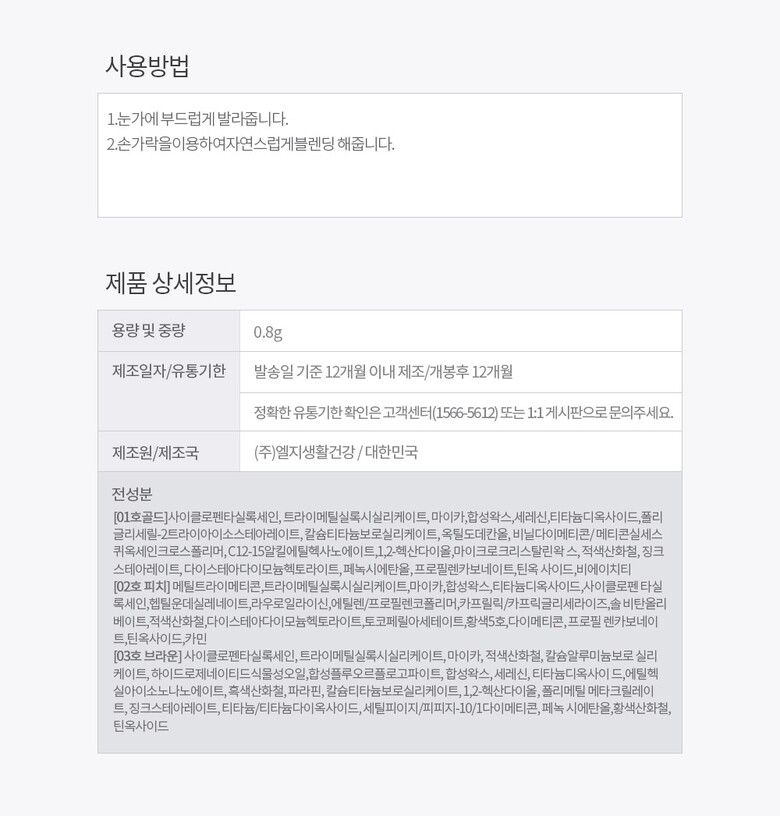 | 5. 제조사 | (주)LG생활건강 /(주)LG생활건강 |