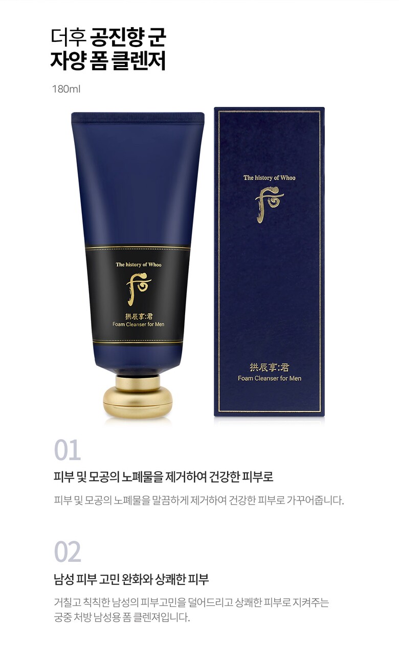 | 4. 사용방법 | 얼굴에 적절한 온도의 물을 적신 후, 적당량을 취해 얼굴에 마사지하듯 고르게 문지른 후 차가운 물로 깨끗하게 씻어냅니다. 특히 면도 전에 자양 폼 클렌져로 세안하면 면도가 용이하며, 피부를 보호할 수 있습니다. . |