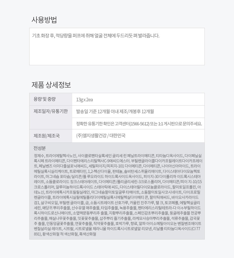 | 5. 제조사 | (주)LG생활건강 /(주)LG생활건강 |