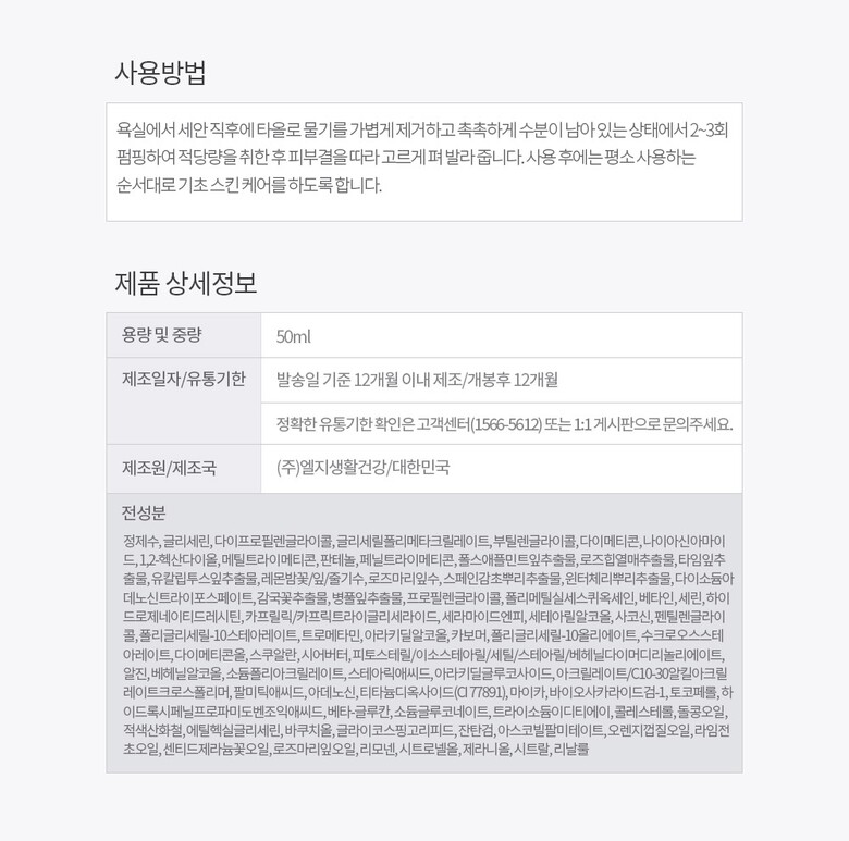 | 5. 제조사 | (주)엘지생활건강 /(주)엘지생활건강 |