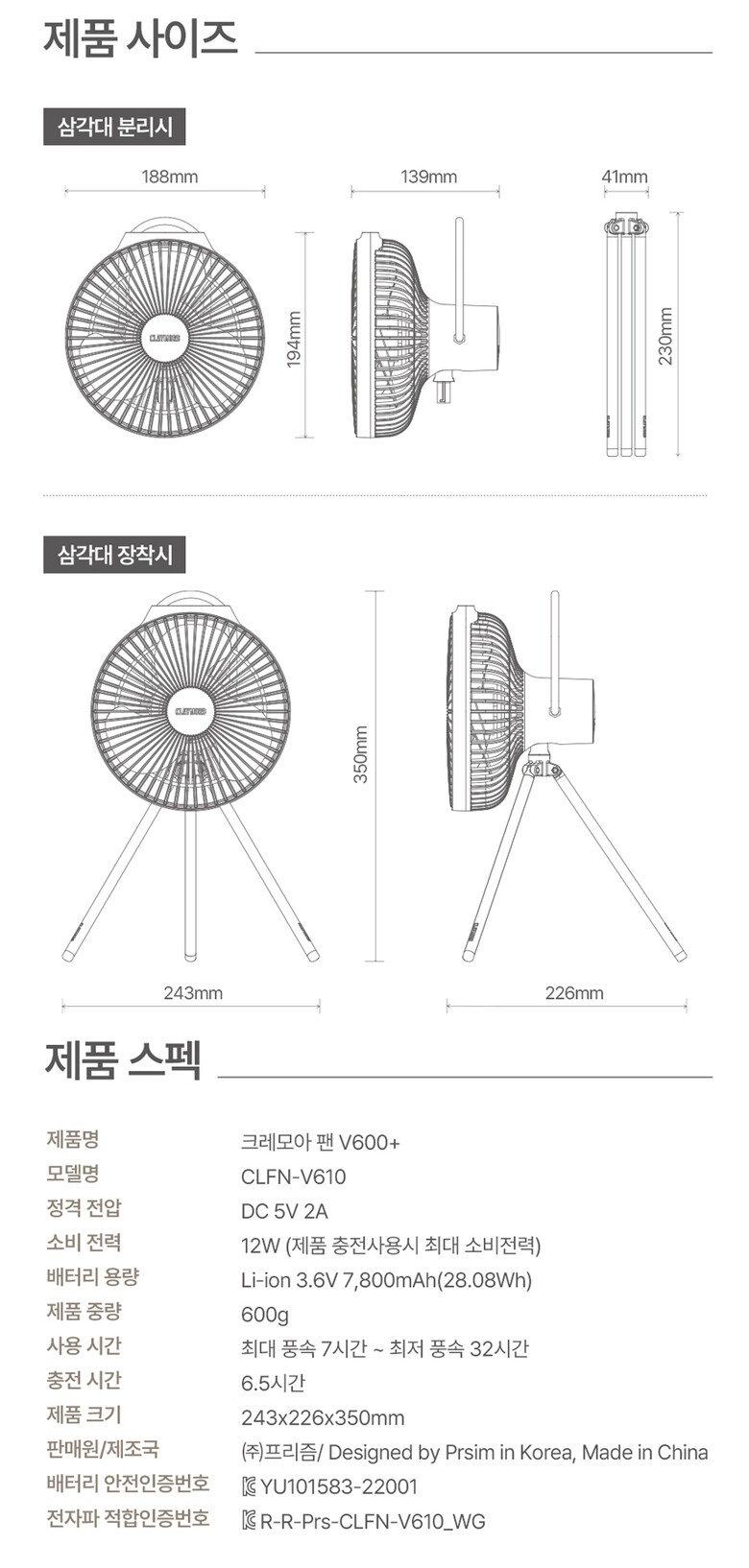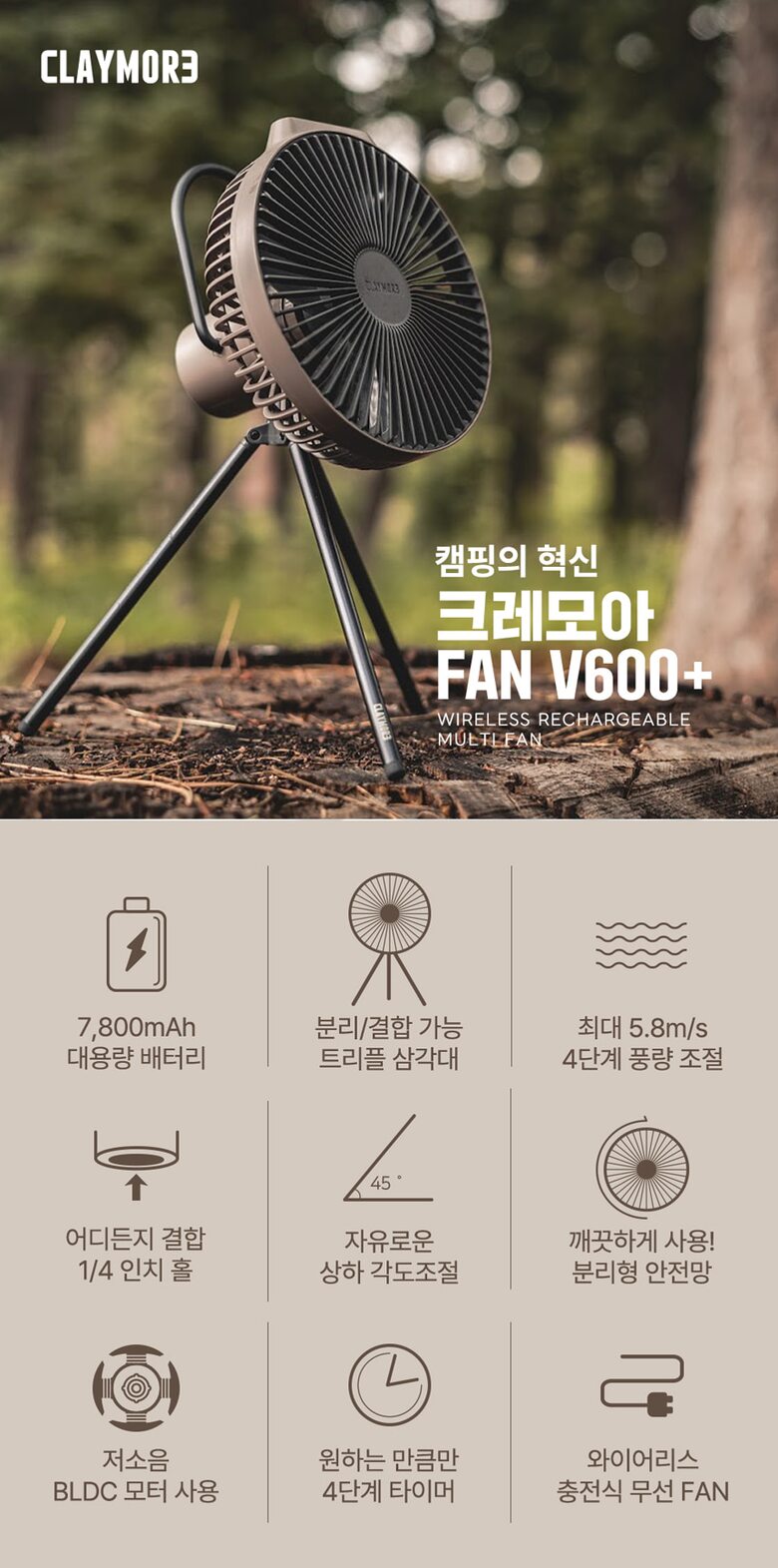 크레모아 V600+ 무선 캠핑 선풍기 써큘레이터 타프팬