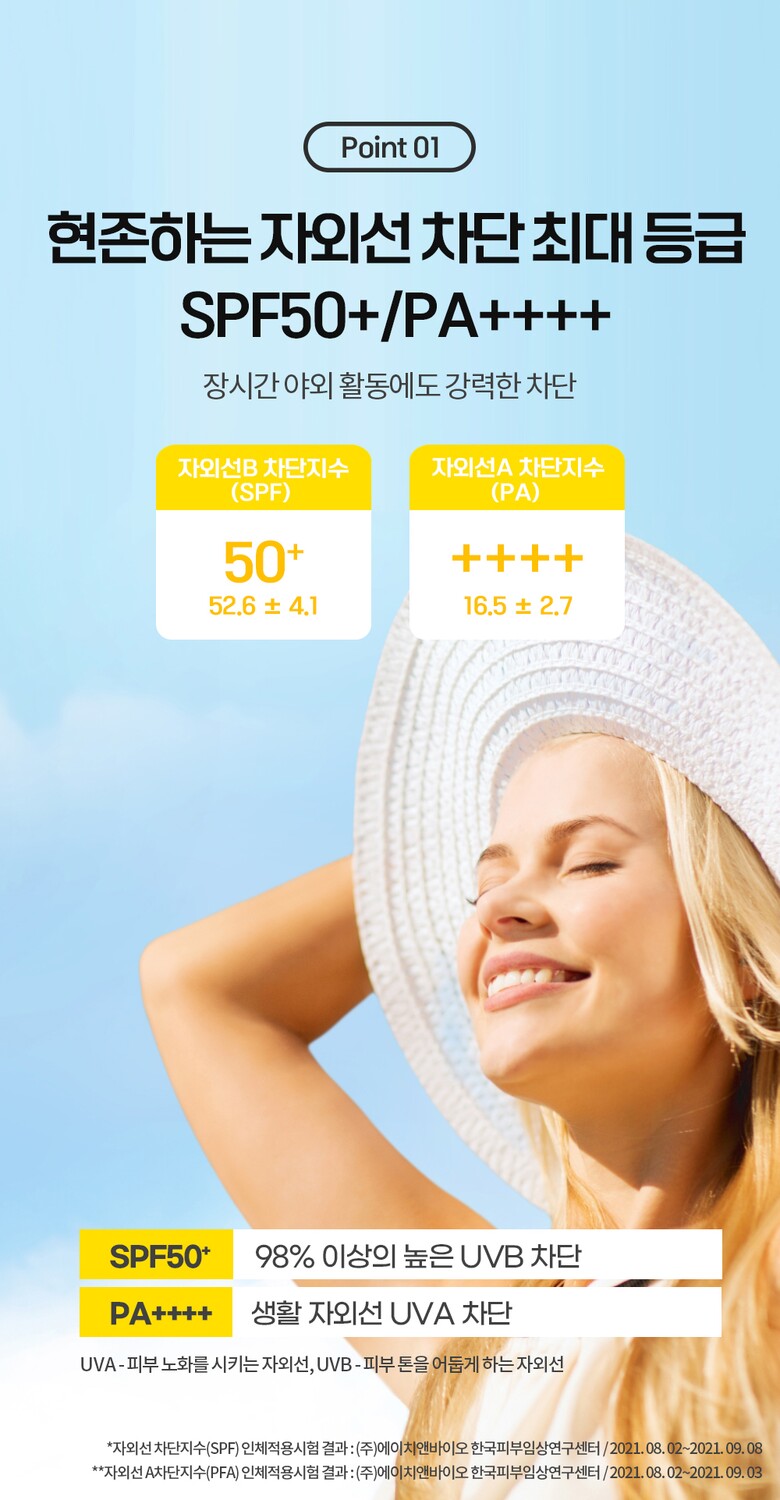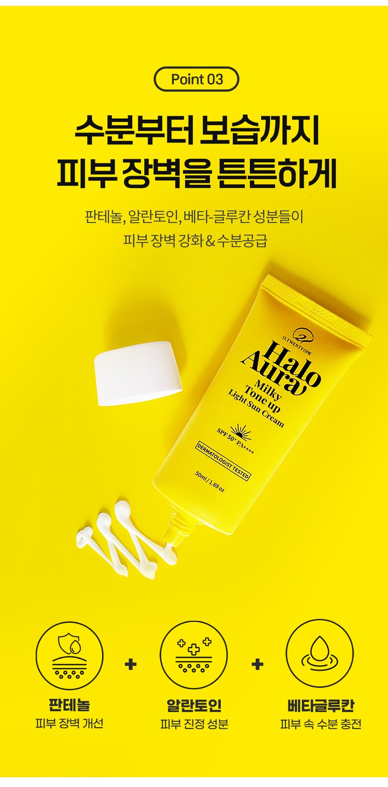 | 7. 주요성분 | 정제수, 부틸렌글라이콜, 에칠헥실메톡시신나메이트, 호모살레이트, 부틸옥틸살리실레이트, 비스-에칠헥실옥시페놀메톡시페닐트리아진, 옥토크릴렌, 페닐벤즈이미다졸설포닉애씨드, 세테아릴알코올, 폴리글리세릴-3메틸글루코오스다이스테아레이트, 티타늄디옥사이드, 코코-카프릴레이트/카프레이트, 솔비탄올리베이트, 트로메타민, 폴리프로필실세스퀴옥세인, 카프릴릭/카프릭트라이글리세라이드, 글리세린, 프로판다이올, 1,2-헥산다이올, 갈락토미세스발효여과물, 다이메티콘/비닐다이메티콘크로스폴리머, 레시틴, 마데카소사이드, 마데카식애씨드, 마이크로크리스탈린셀룰로오스, 바실러스/소이빈발효추출물, 베타-글루칸, 병풀추출물, 세테아릴올리베이트, 셀룰로오스검, 소듐메틸스테아로일타우레이트, 소듐아크릴레이트코폴리머, 소듐하이알루로네이트, 솔비탄세스퀴올리에이트, 수크로오스스테아레이트, 스핑고모나스발효추출물, 아시아티코사이드, 아시아틱애씨드, 알란토인, 알루미나, 트라이에톡시카프릴릴실레인, 판테놀, 펜틸렌글라이콜, 폴리하이드록시스테아릭애씨드, 하이드로제네이티드포스파티딜콜린, 하이드록시아세토페논, 해바라기씨오일, 3-O-에틸아스코빅애씨드, 향부자추출물, 다이소듐이디티에이, 에틸헥실글리세린, 향료 |