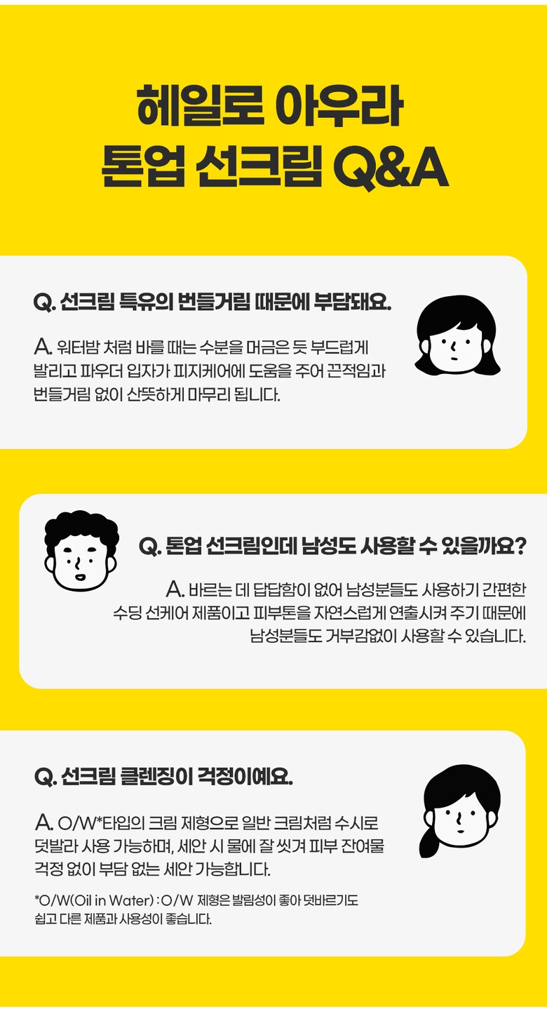 | 4. 사용방법 | 스킨케어 마지막 단계 또는 외출 30분 전에 본 품 적당량을 덜어 자외선이 노출되는 부위에 골고루 펴 바릅니다. |