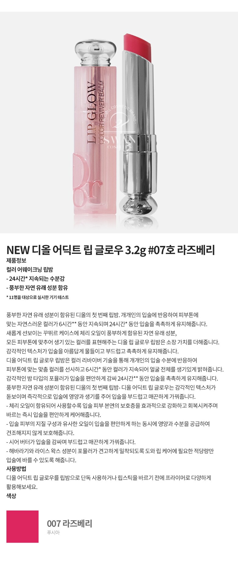 디올 NEW 어딕트 립 글로우 립밤 3.2g 07호 라즈베리
