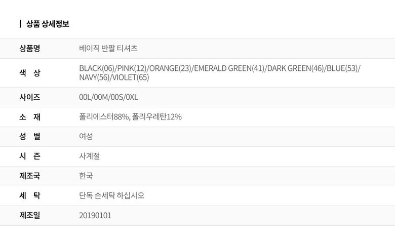 | 2. 색상 | BLACK(06)/PINK(12)/ORANGE(23)/EMERALD GREEN(41)/DARK GREEN(46)/BLUE(53)/NAVY(56)/VIOLET(65) |
