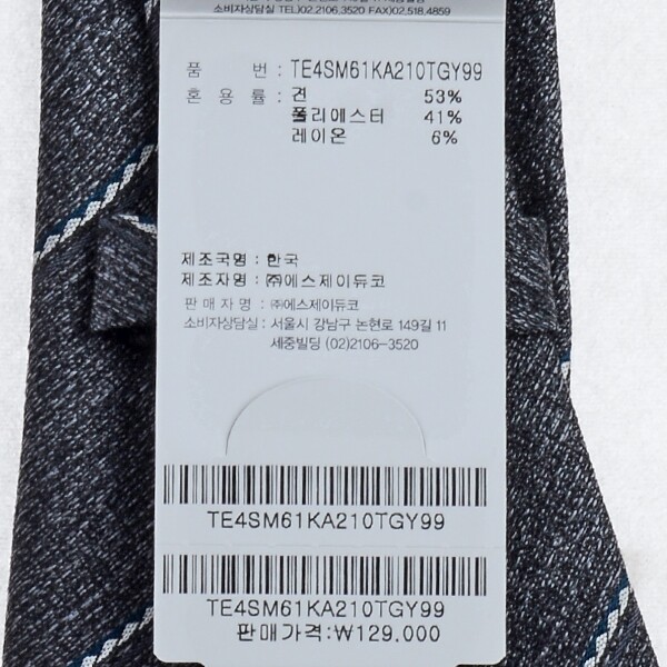 6. 취급시 주의사항 -넥타이 보관시 매듭을 풀고 보관해 주십시요.-구김이 가지 않도록 길게 걸어두시는것이 좋습니다.-니트 타이의 경우, 장기간 걸어두시면 늘어날 수 있습니다. -둥글게 말아서 보관해 주십시요. - 접어서 보관하실 경우, 모양이 망가질 수 있으니 피해 주십시요.-물세탁시 제품의 광택 및 색상이 감소될 우려가 있습니다. -세탁시 사용시 모양이 망가질 수 있습니다.