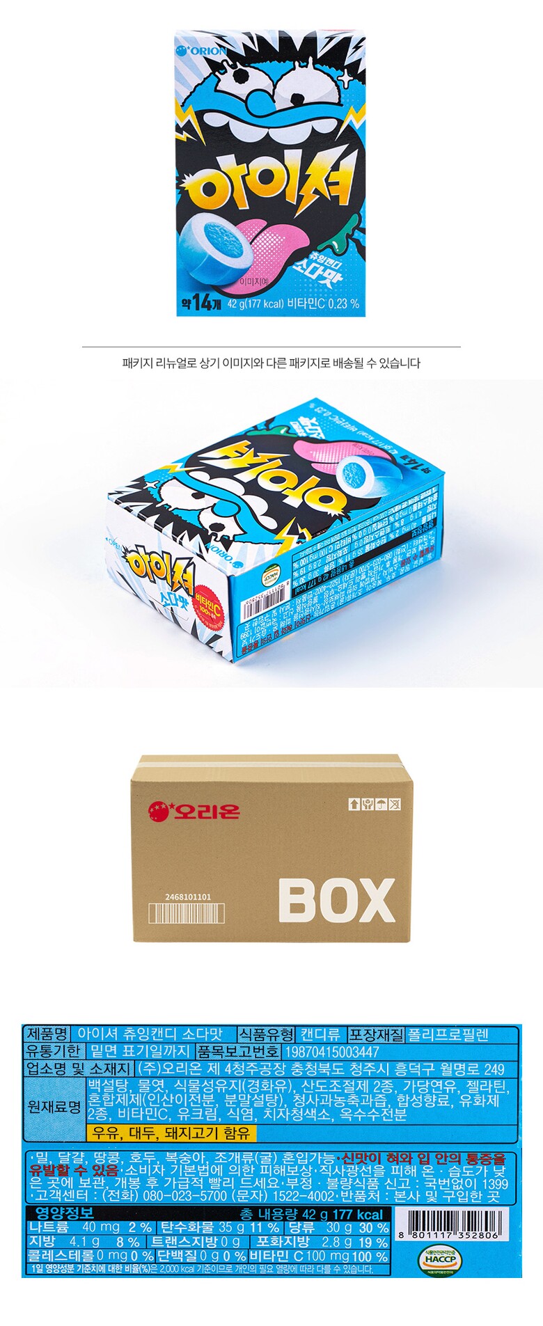 해당 상품은 [ 오리온 아이셔 츄잉캔디 소다맛 42g 6입 ] 구성의 상품입니다.