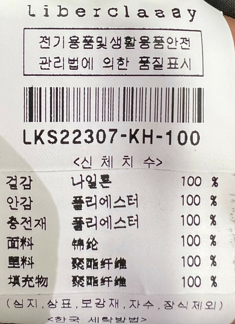 | 1. 제품 소재 (섬유의 조성 또는 혼용률을 백분율로 표시, 기능성인 경우 성적서 또는 허가서) | 겉감:나일론 100% / 안감:폴리에스테르 100% / 충전재:폴리에스테르 |