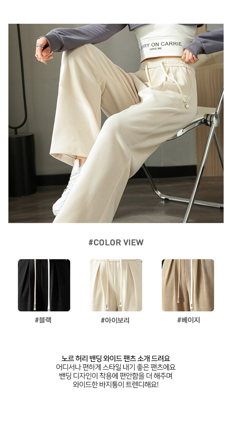 [~77까지]노르 허리 밴딩 와이드 팬츠