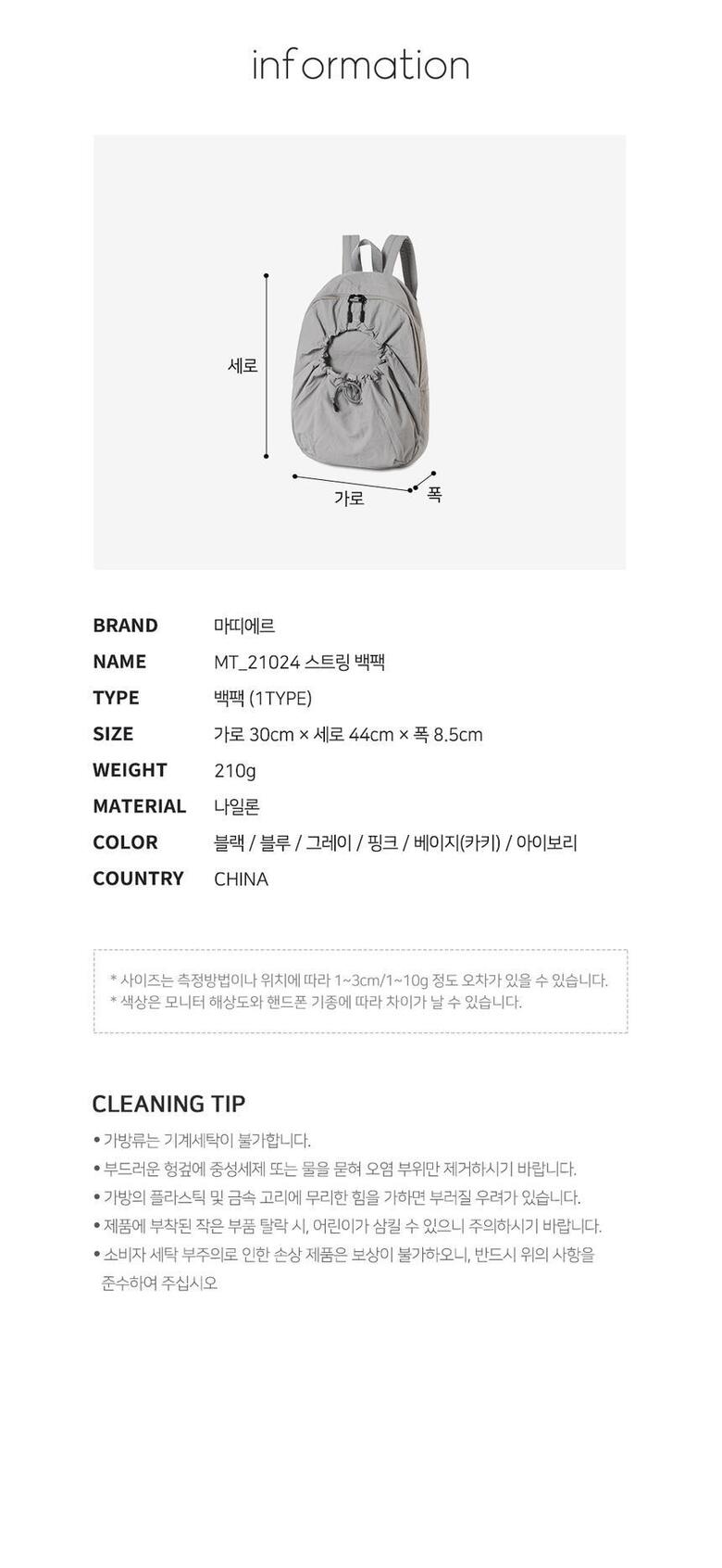 레네 남자 여성 경량 편한 캐주얼 스트링 가방 백팩