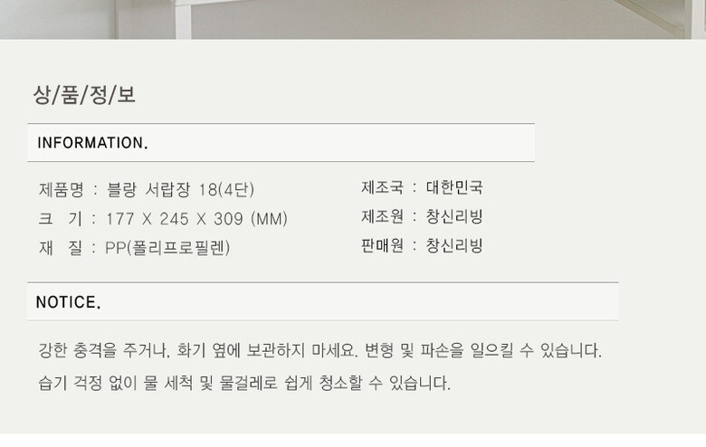 #창신리빙 #서랍장 #블랑 #18 #177x245x309mm #4단 #화이트 #알파 #alpha