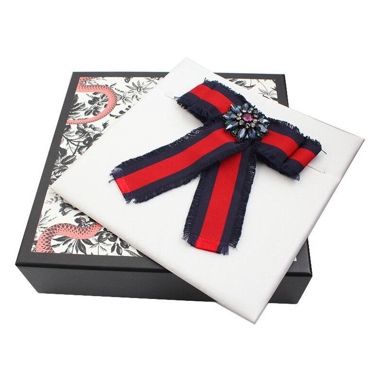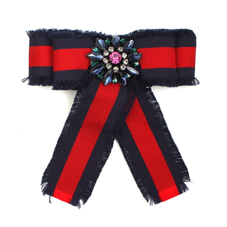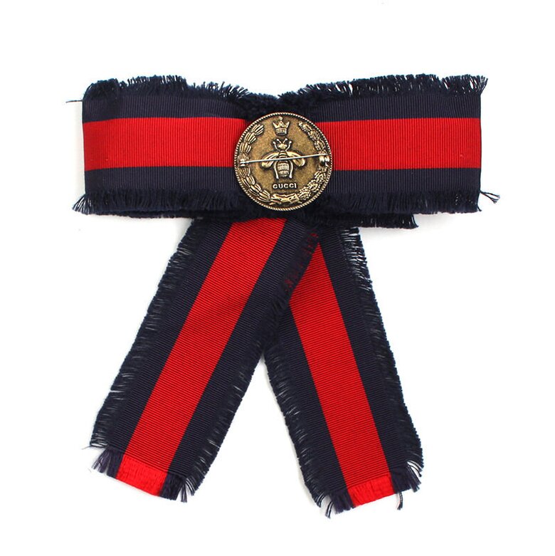 구찌 크리스탈 리본 브로치를 선보입니다.