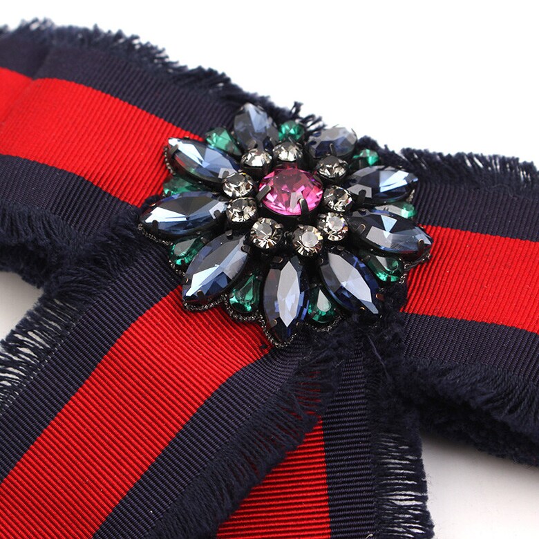 투톤 리본에 다채로운 색상의 크리스탈 어플리케가 매력적인 패션 아이템입니다.