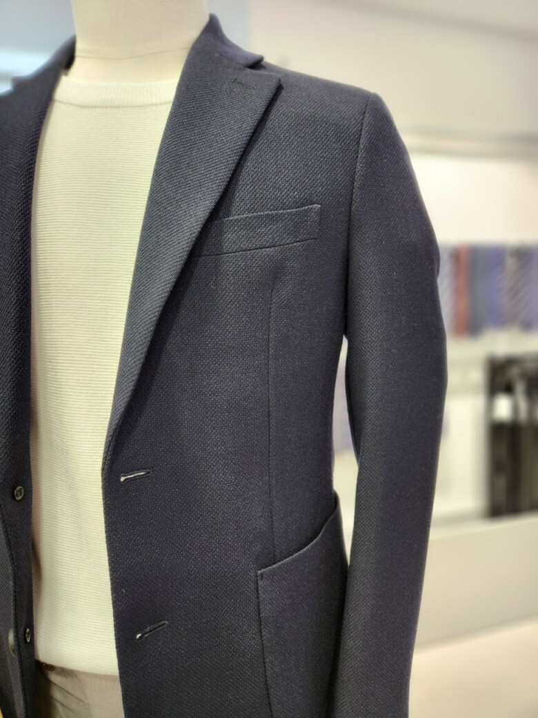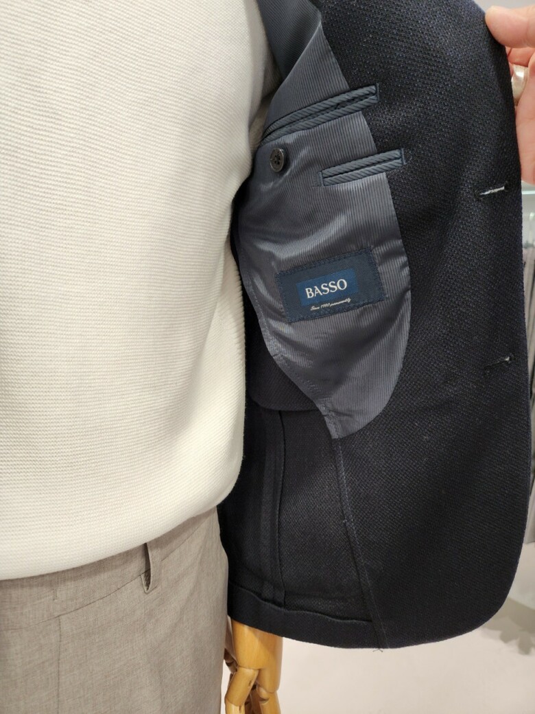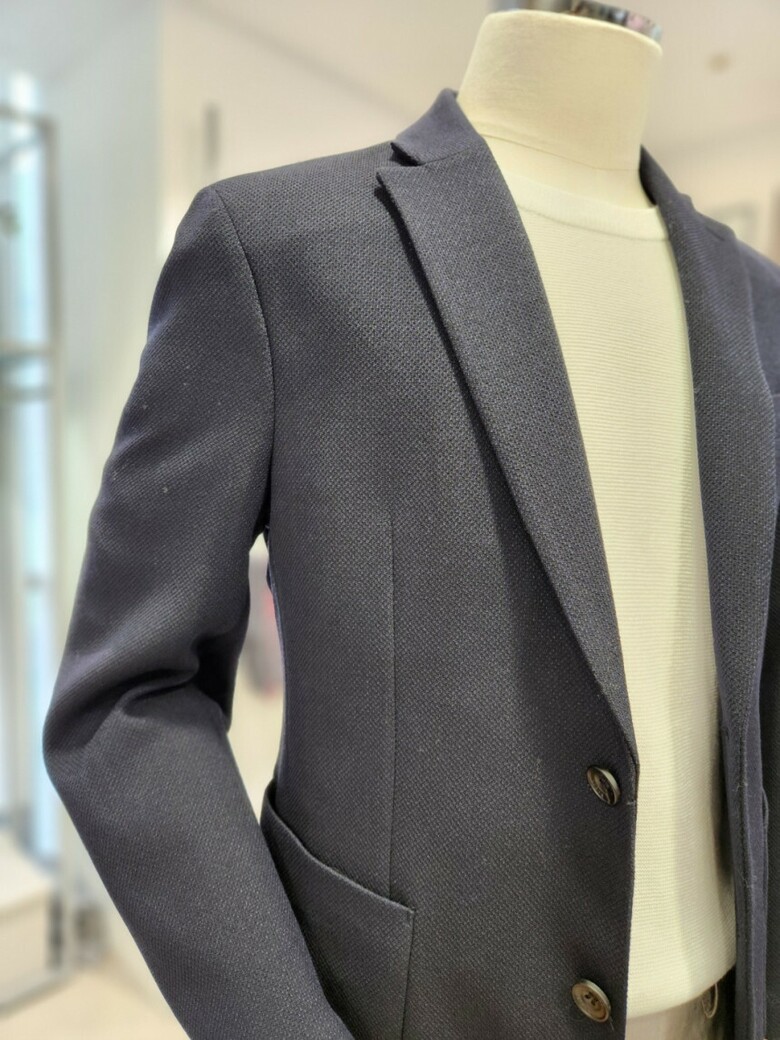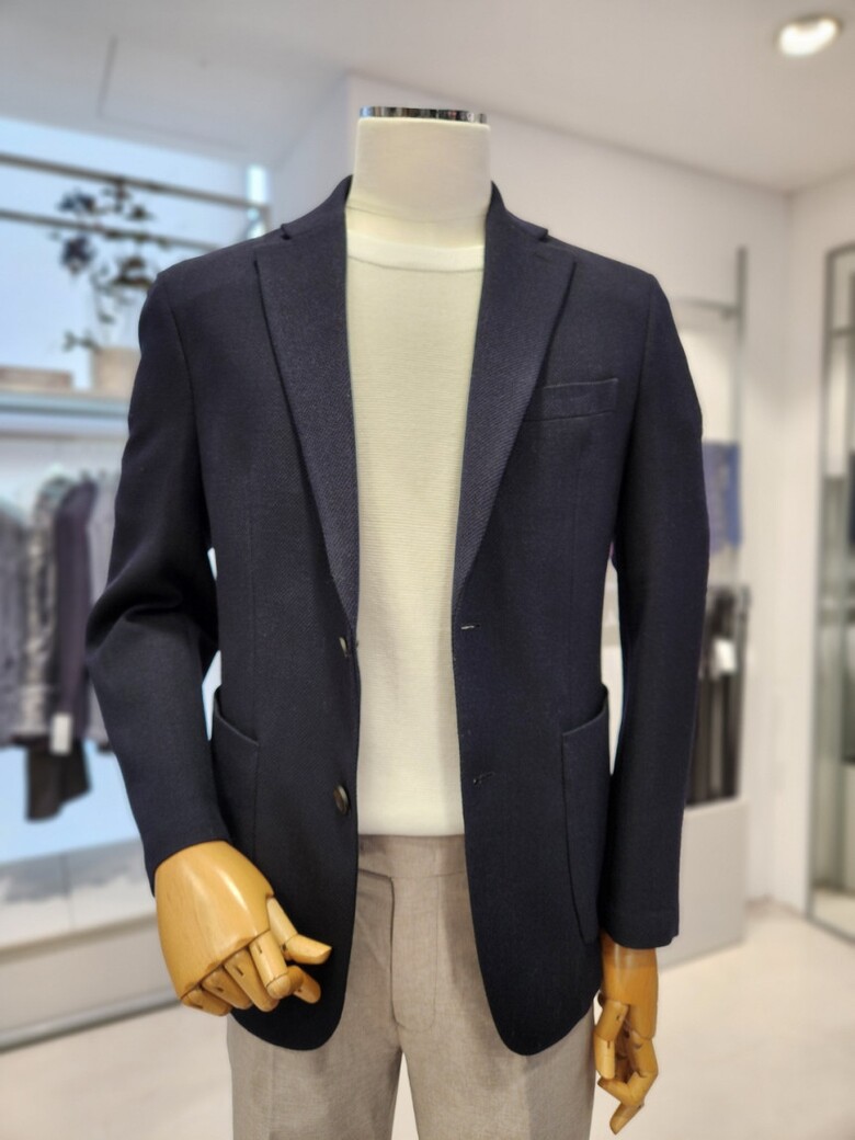 바쏘의 시그니처 와플 조직의 네이비 기본 콤비 자켓 입니다.