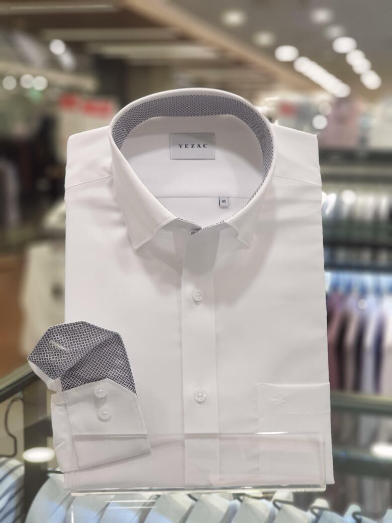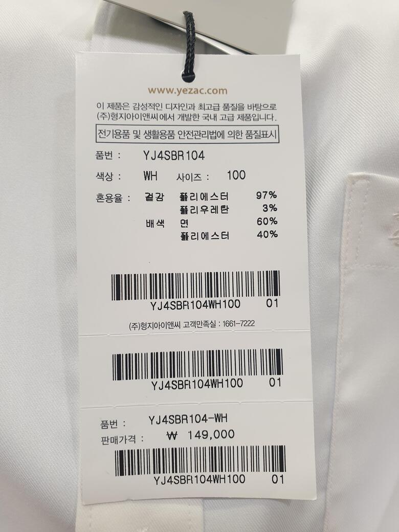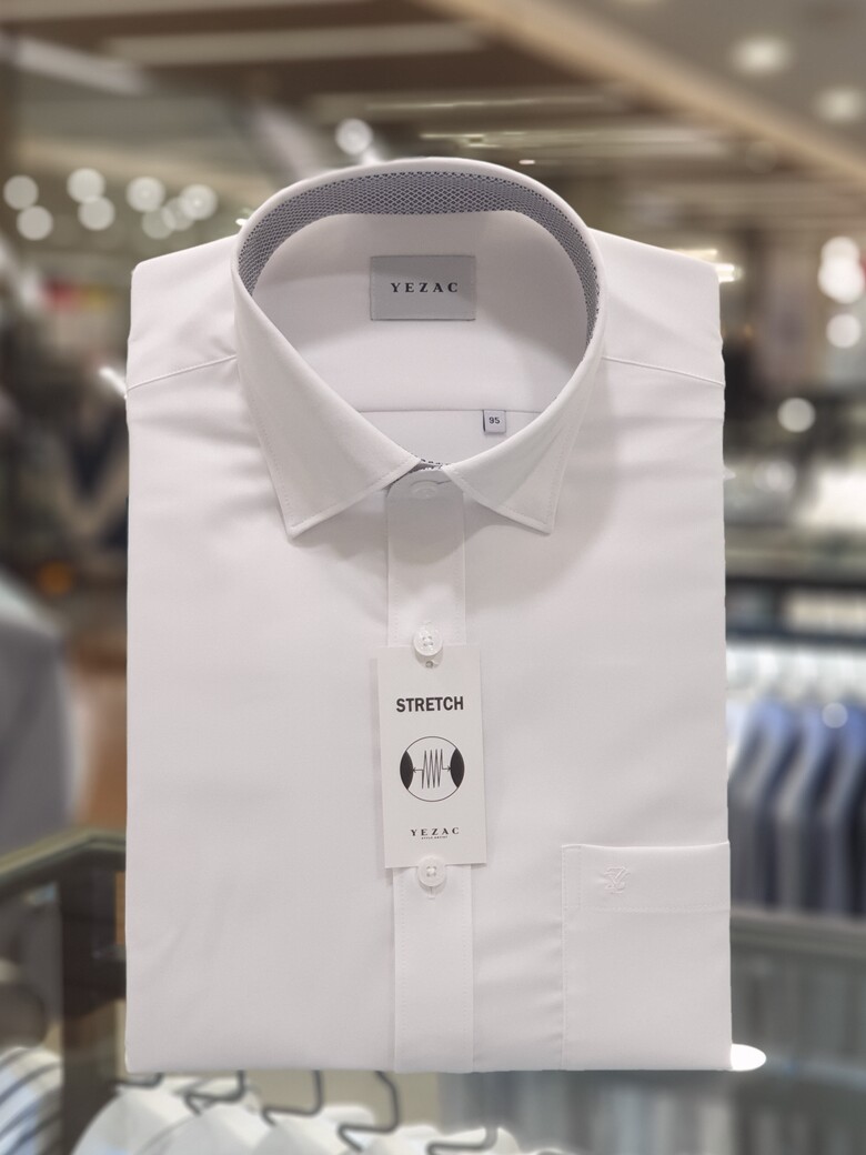 [예작셔츠] 화이트 스냅버튼 사방스판 링클프리 일반핏 셔츠 YJ4 SBR 104 WH
